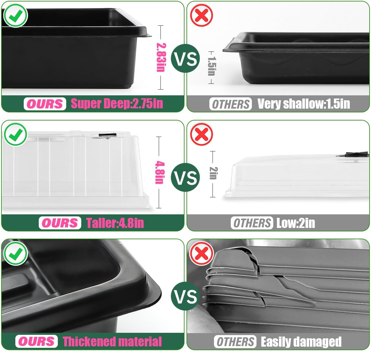 - 【Ideal Large Size for Versatility】Our 15.3'' x 11.5'' x 7'' trays with 5-inch tall clear lids are designed for easy transport and robust handling. Unlike larger 1020 seed trays, these medium-sized plant trays are leak-proof and help prevent transplant shock, making them perfect for seasoned gardeners and beginners alike. Perfect for starting seedlings, microgreens, and more!