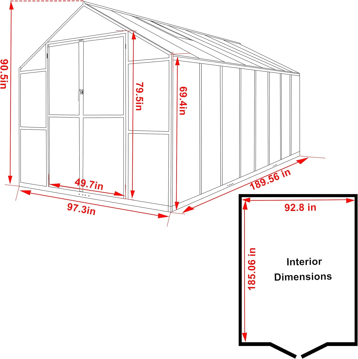 - Product Dimensions : 189.56"L x 97.3"W x 90.5"H