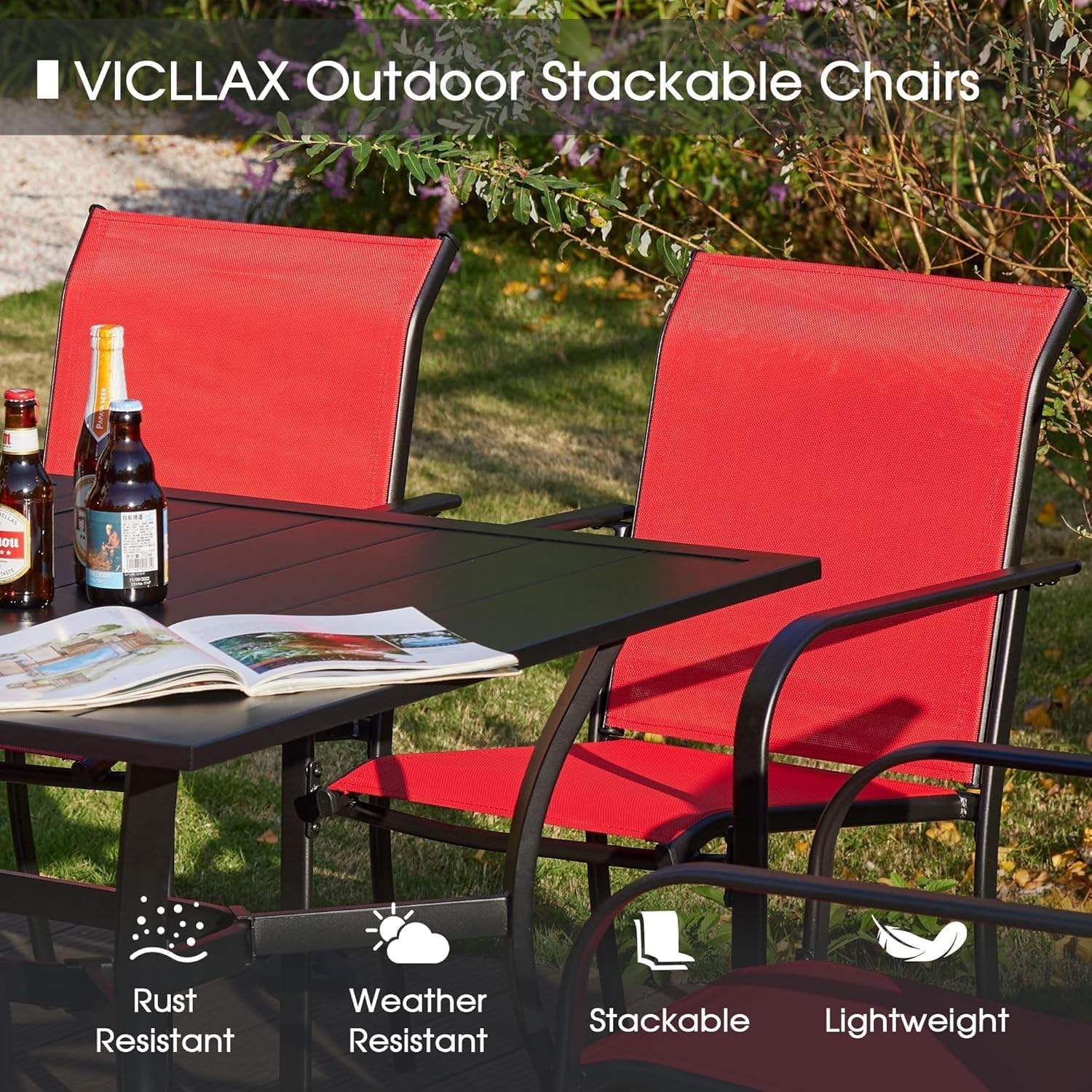 - 【Patio Dining Chairs】 Slight lawn chairs are stackable for space-saving and portability. Breathable patio chairs feature good airflow, UV, fade, and stain-resistant, comfortable to sit in the courtyard or garden on a hot summer day