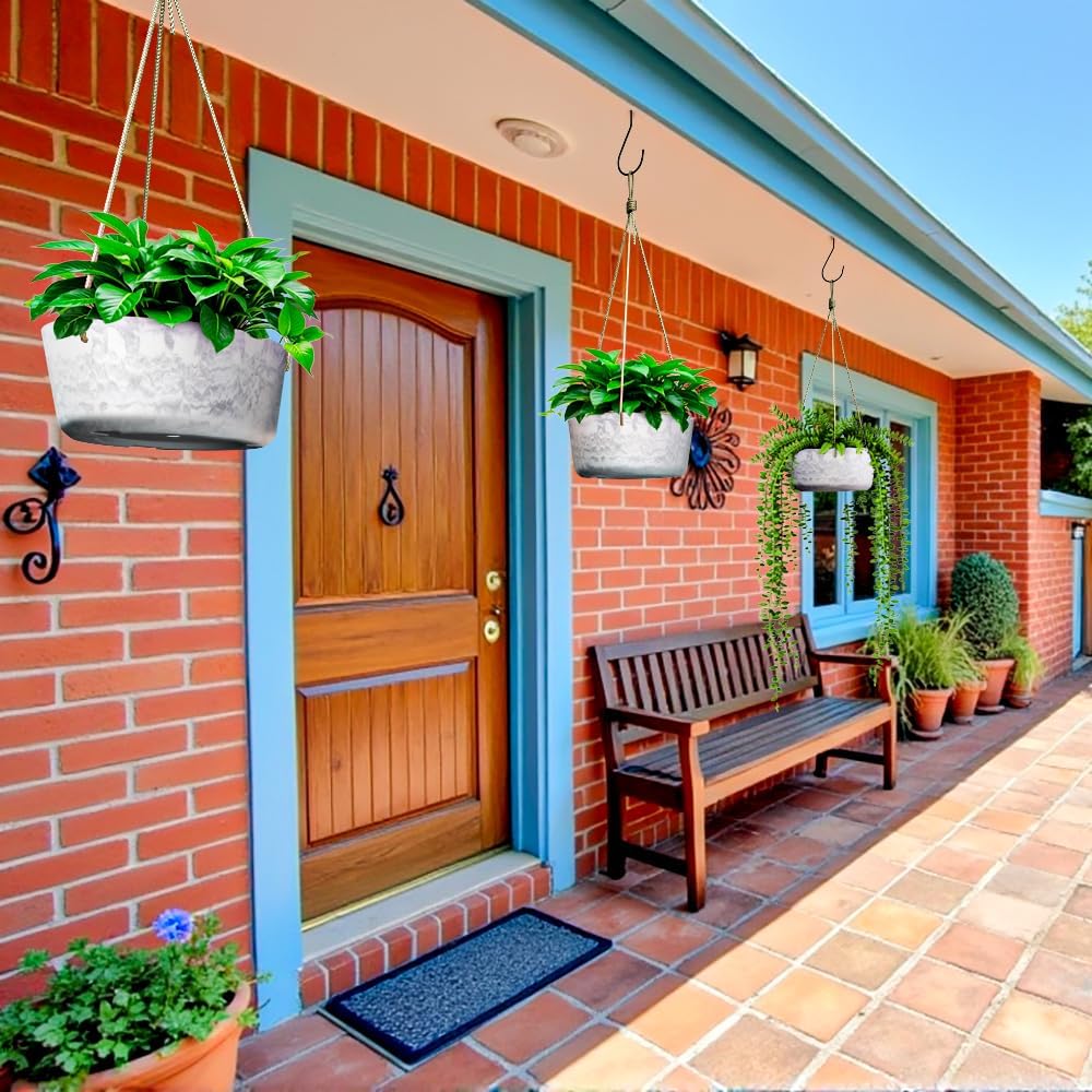 10.7 Inch Hanging Planter for Outdoor Indoor Plants,2 Pack Hanging Flower Pots with Drain Holes for Garden Home Decor Use (Marble)