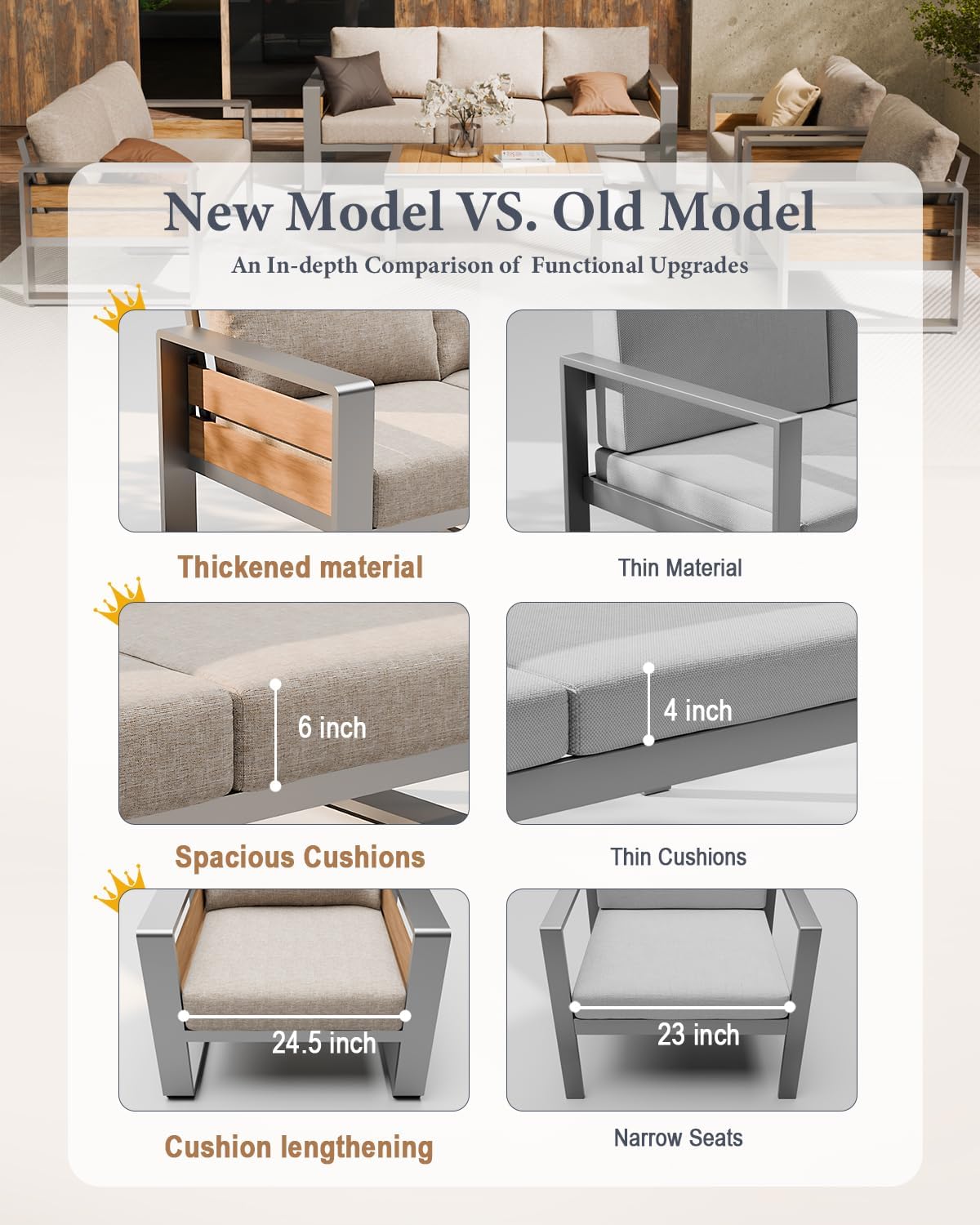 - ⛱️【Rust-resistant All-Aluminum Frame】Crafted with a brushed aluminum technique, aluminum frame, stainless steel screws, this outdoor furniture set is resistant to rain, snow, and sun exposure, it's water-resistant, and rust-resistant so you can feel safe leaving this set outdoors no matter the season. Its lightweight design allows for effortless movement and repositioning. Perfectly fitting with your poolside area, backyard, poolside, balcony, garden and deck.