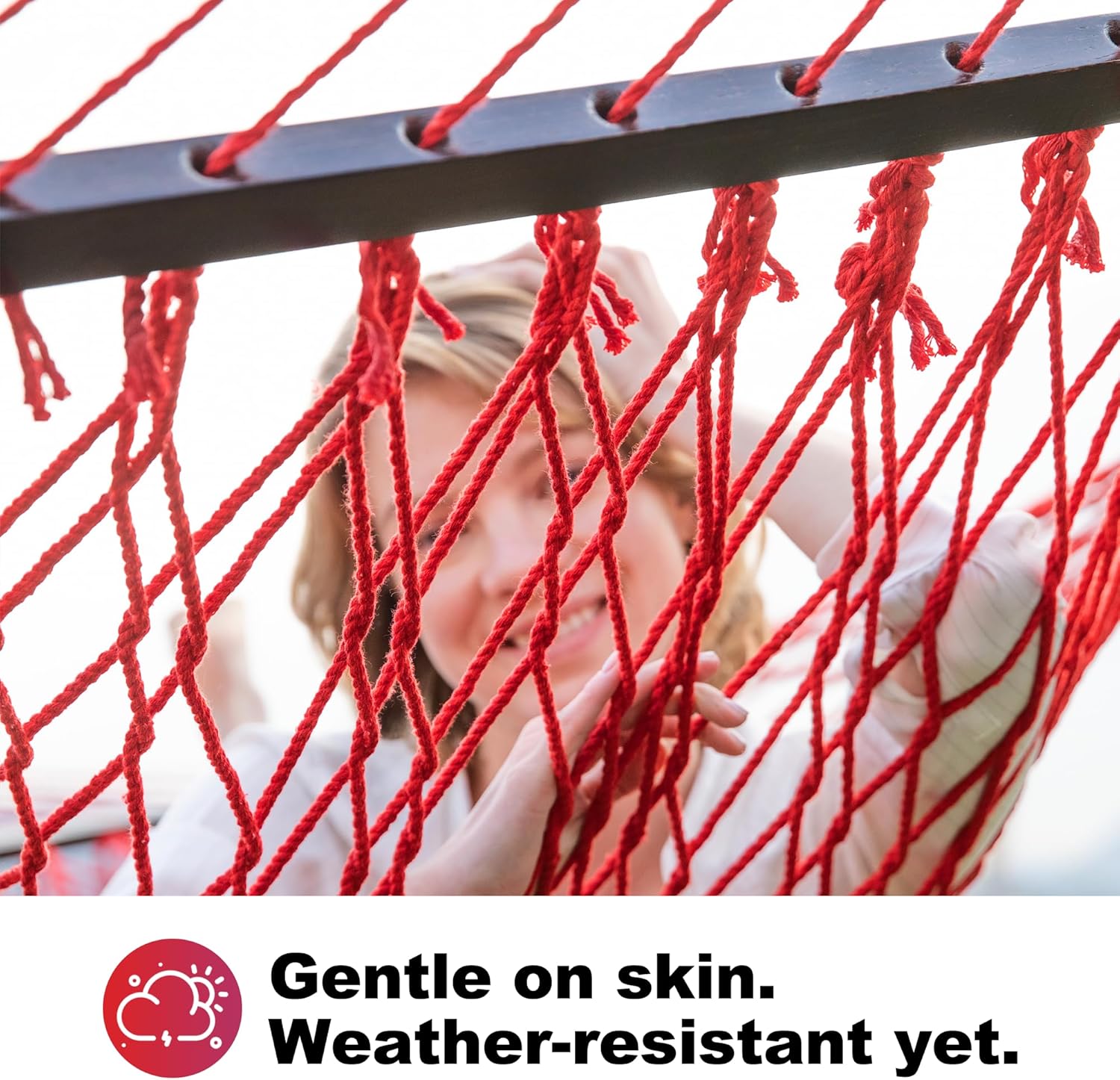 - ✅THE ULTIMATE RELAXING ROPE HAMMOCKS: Of the many types of hammocks available, only the traditional rope hammock completely wraps around the body, releasing pressure from every body curve and healing through the breeze blowing through the mesh.