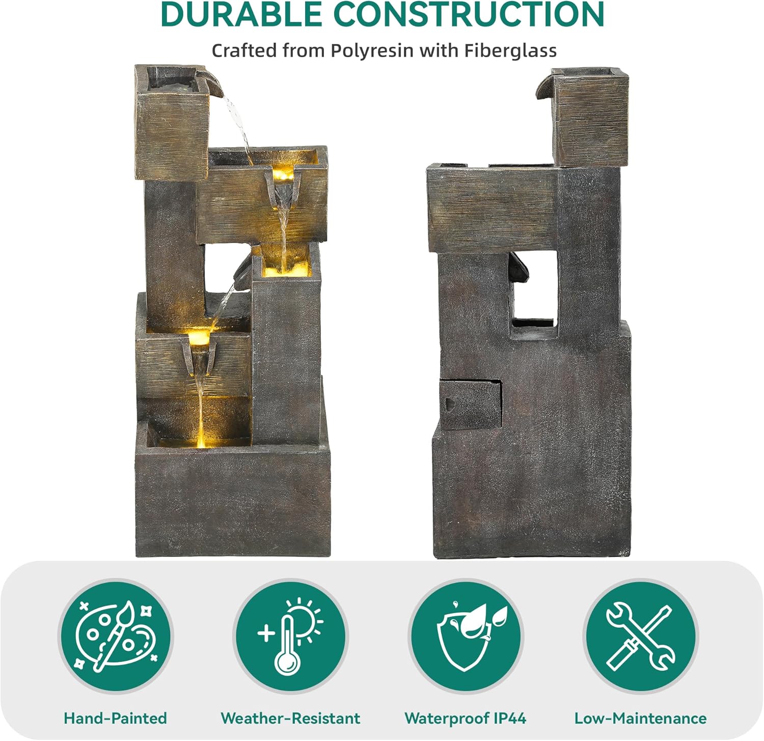 - MODERN MINIMALIST DESIGN: This water fountain outdoor features a 5-tier stacked blocks with handcrafted 3D concrete finish and fluted texture, bringing modern aesthetics to your patio, garden, yard or any outdoor space. Measuring 32.5'' H X 13.8'' W X 11.25'' D, it's the perfect focal point to enhance your space.