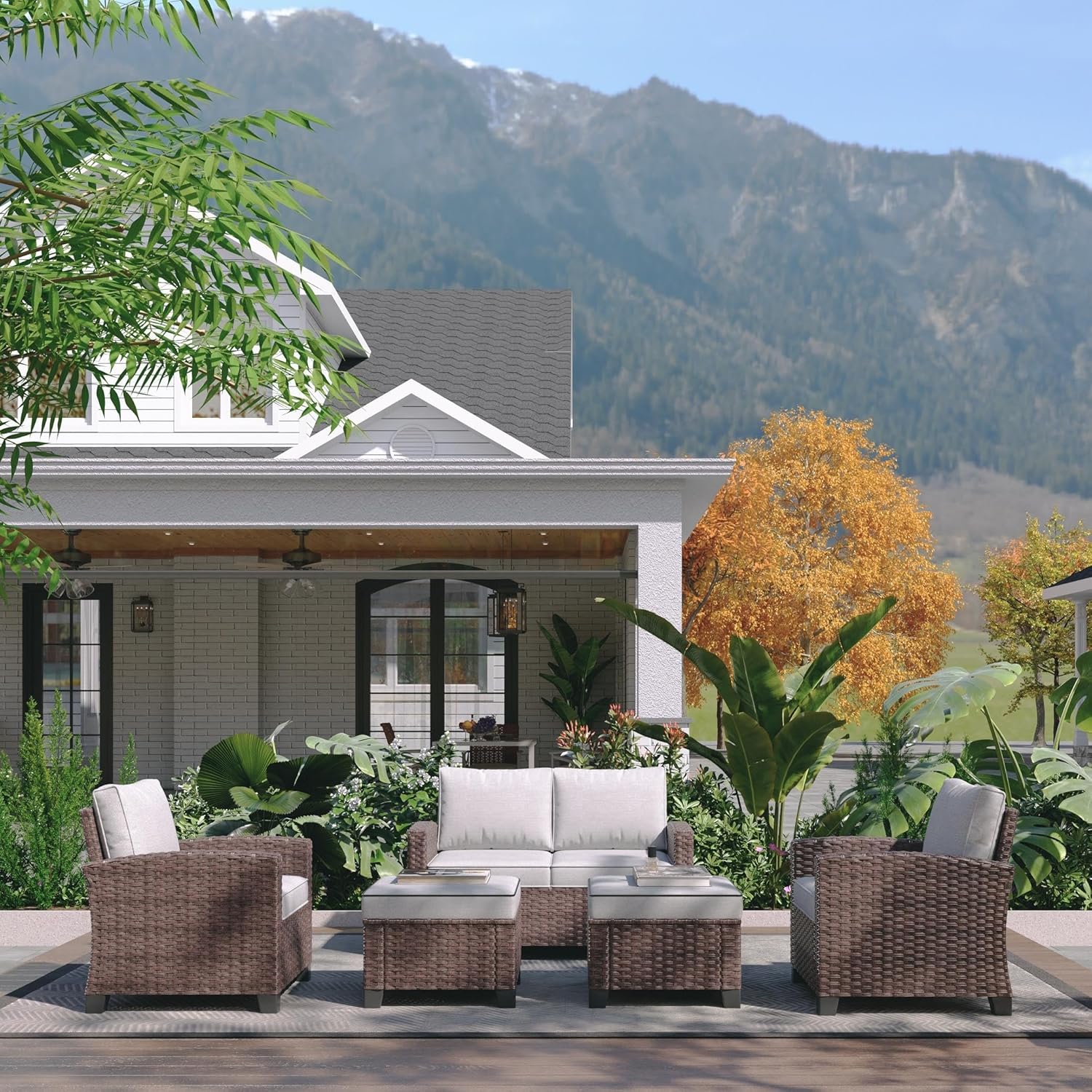 - WEATHER-RESISTANT: Outdoor patio furniture set with durable rattan wicker construction and rust-resistant steel frame ensures long-lasting outdoor use in various weather conditions