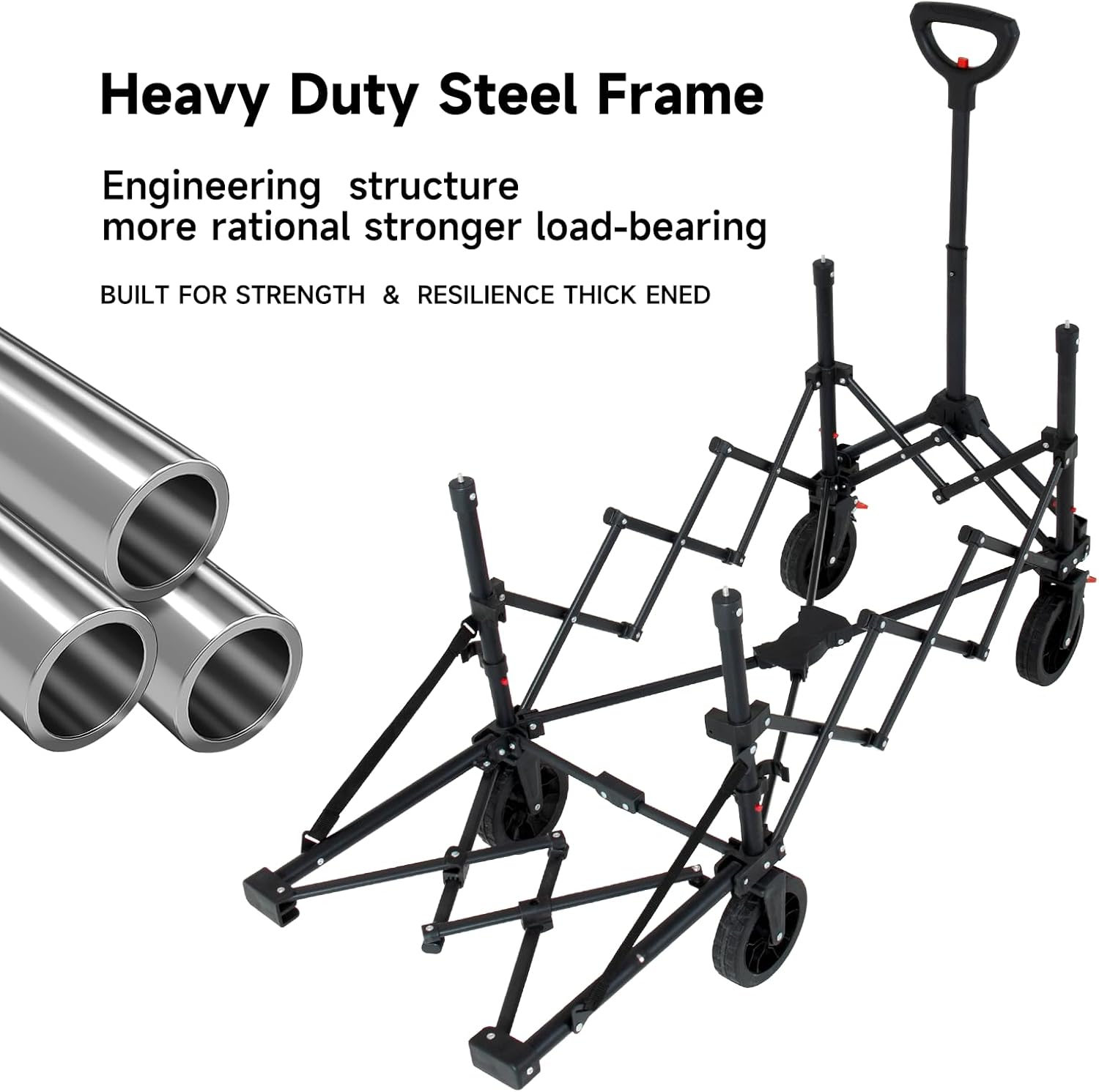 - 【Camping wagon & Beach wagon cart】When you consider all the equipment you carry on the beach or outdoors, the utility wagon can help you transfer all the goods from your arms to a sturdy carriage, making it easier for you. This is an excellent choice for outdoor activities and can also be used for carrying groceries, fishing, sports equipment, or camping gear.