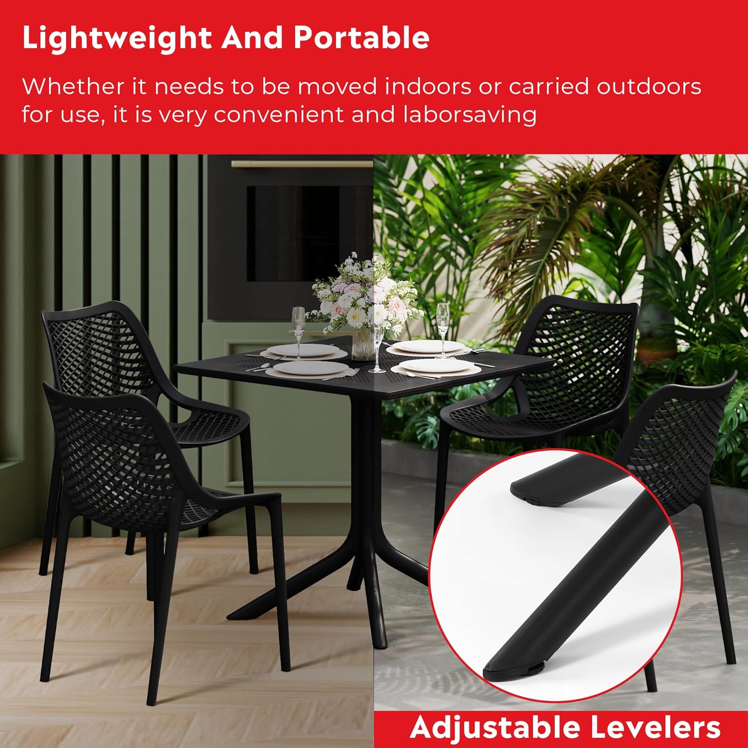 Table Chairs Set of 4, HDPE Patio Square Dining Table and Stackable Chairs, Outdoor Small Patio Furniture Set All Weather for Backyard Porch Poolside, Black