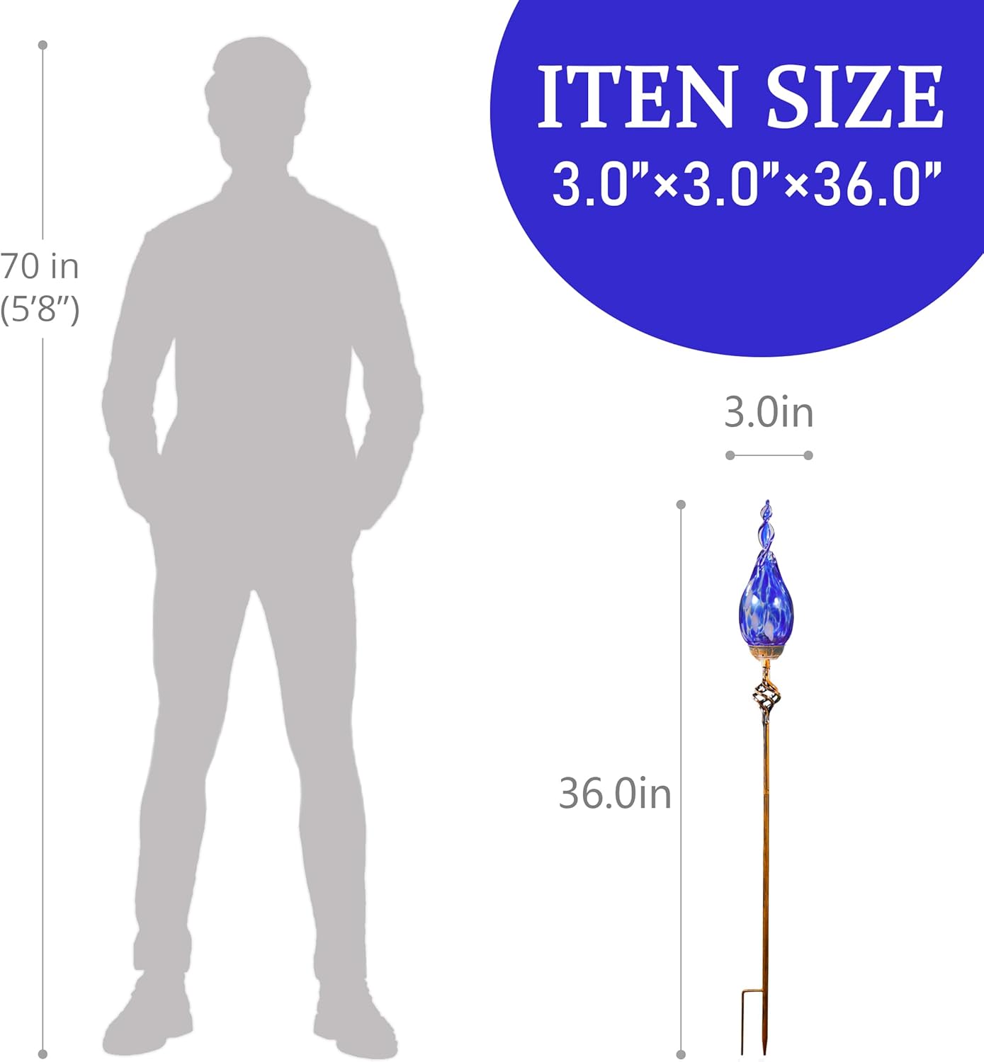 Solar Garden Lights, Decorative LED Flame Garden Stakes, Hand Blown Glass and Outdoor Waterproof Glass Stakes (Dark Blue)