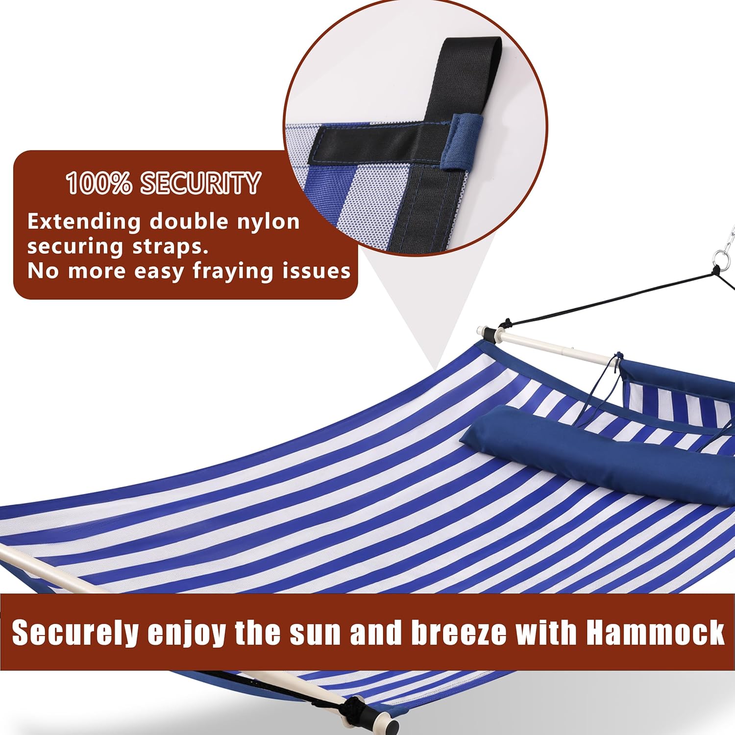 TegerDeger Anti-flip 12FT Hammock Large Hammock 450LB Capacity with Iron Spreader Bar & Nylon Rope for Outside, Patio, Garden, Backyard, Beach - Blue Strips