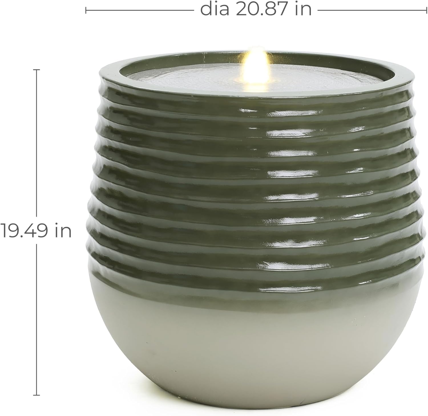 LuxenHome 20" Water Fountain Outdoor with LED Light, Modern Bubbling Garden Water Fountains with Gradient Color, Resin Outdoor Waterfall Fountains with Ceramic Like Glaze for Yard, Patio, and Porch