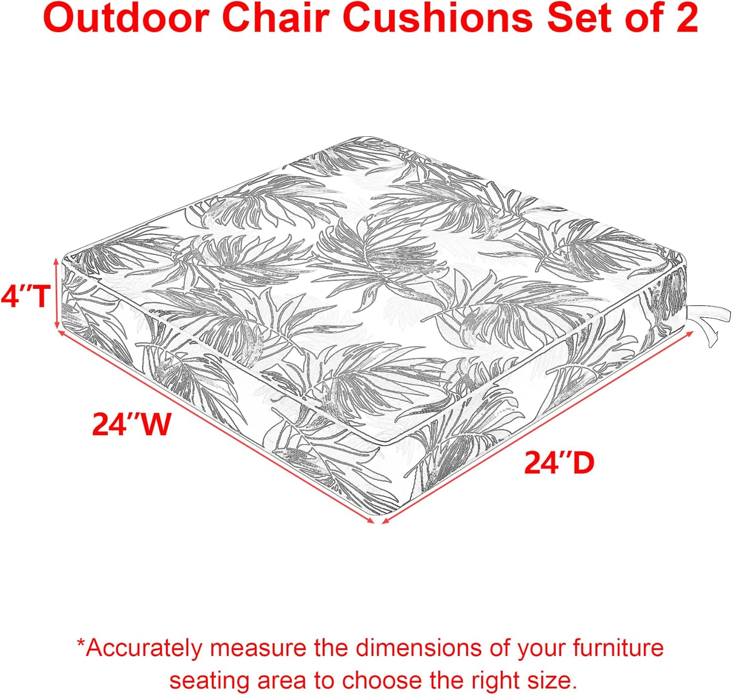 - Size Selection - Including 2 outdoor chair cushions measuring 24” W x 24” D x 4” T ( The size description is only for the cushion size, accurately measuring the dimensions of your furniture's seating area before purchasing, make sure the cushion size fits your furniture ).