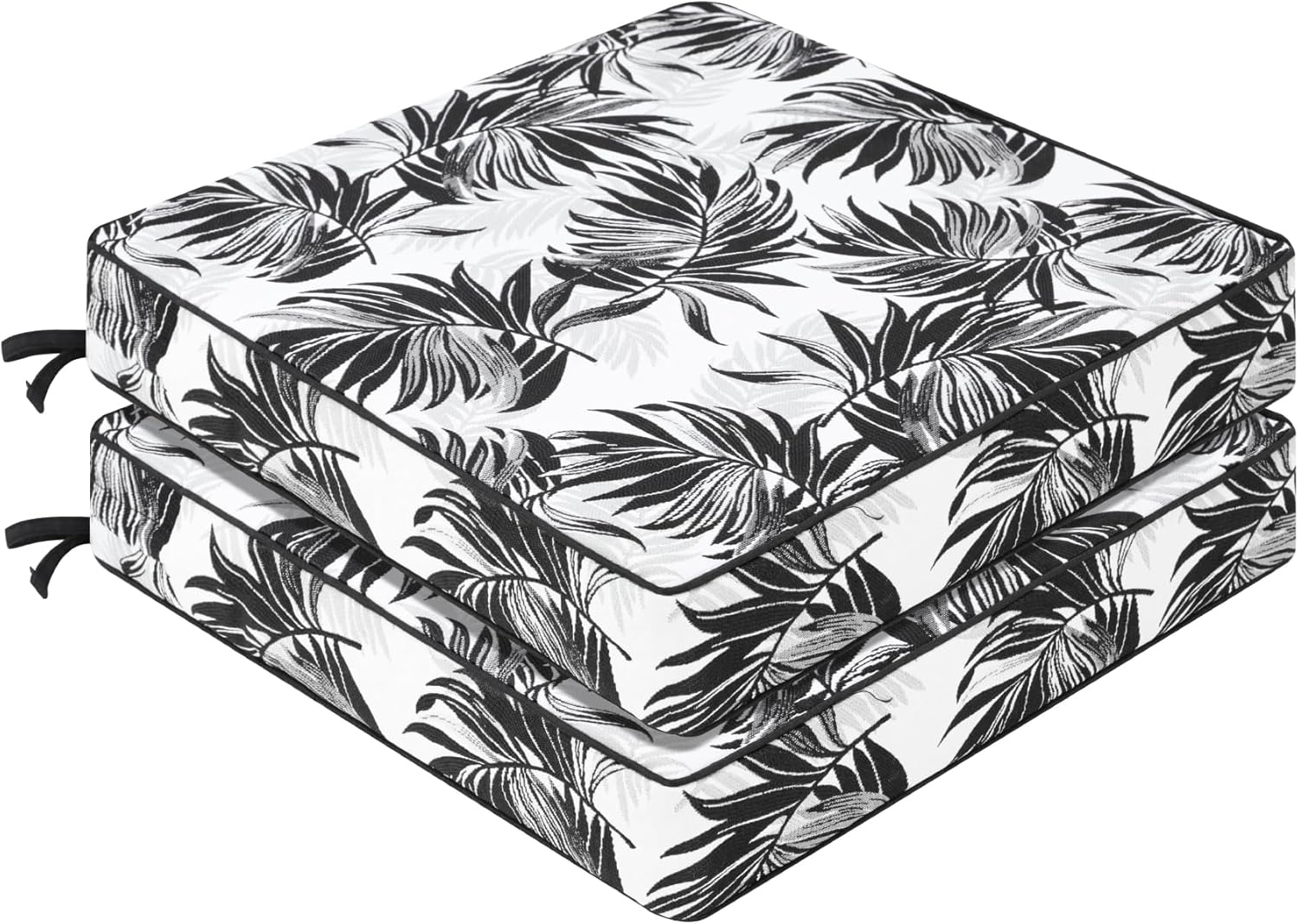Favoyard Outdoor Chair Cushion 24 x 24 x 4 In Waterproof Pattern Fade Resistant Cushions for Patio Furniture with Removable Cover Attach Straps 28D Foam Insert Cushions Pads for Seat Sofa Couch 2 Pack
