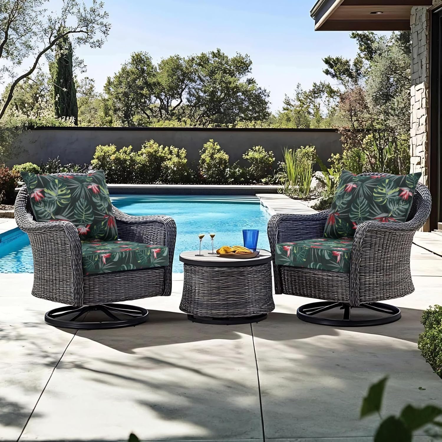 Favoyard Outdoor Seat Cushion 22 x 22 x 3 in Waterproof Pattern Fade Resistant Cover Removable Patio Furniture Cushions Deep Seat & Back Cushion Set with Adjustable Straps for Patio Chair Sofa Couch