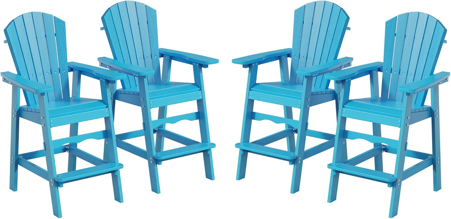 Tall Adirondack Chair Set, Outdoor Adirondack Bar Height Chairs Set of 2, 360lb Capacity HDPE Outdoor Seating for Patio,Balcony, Poolside (Blue, Set of 4)