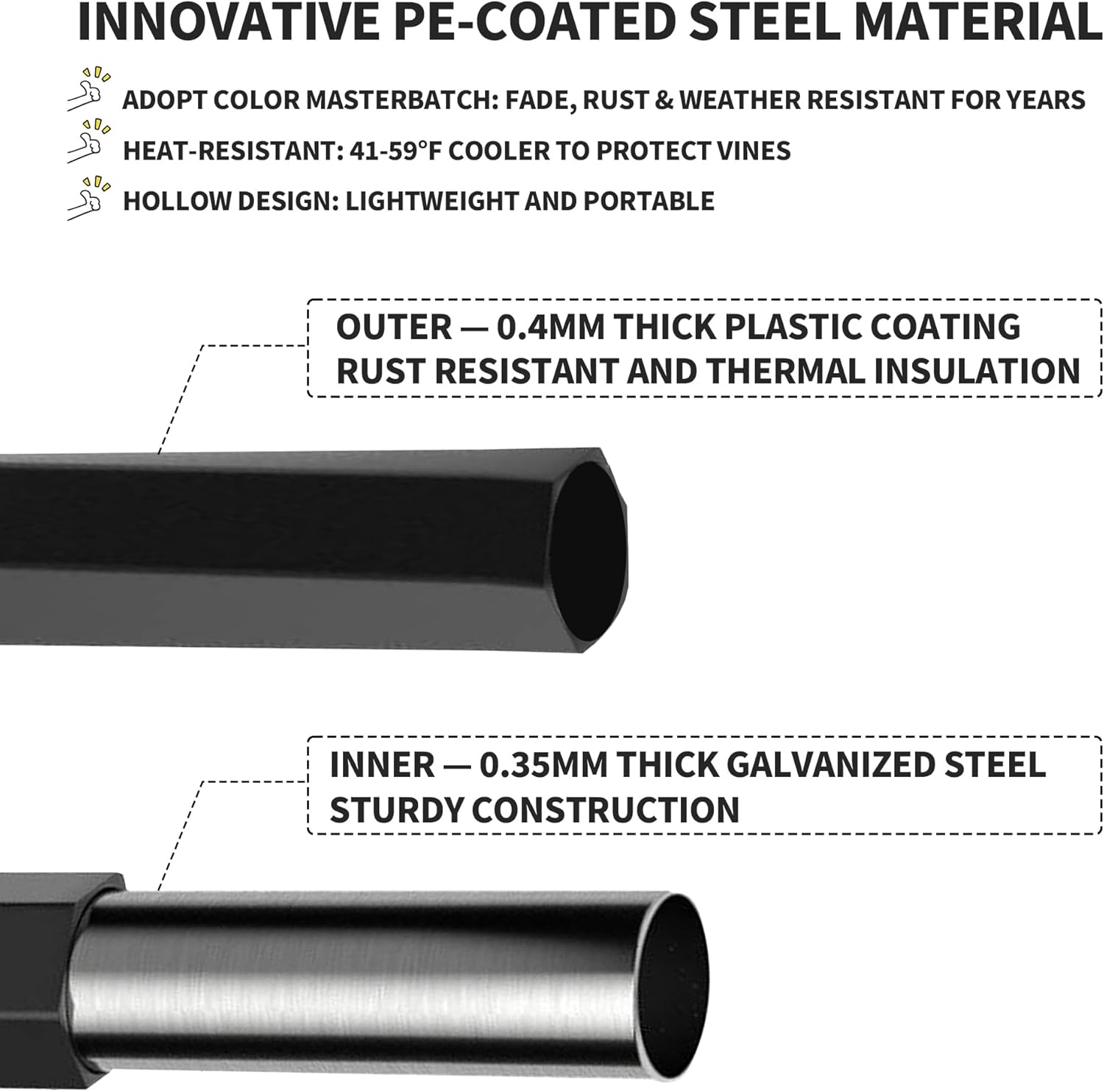 - PE-Coated Steel - Made with innovative PE-coated steel, this garden arch provides rust resistance, fade resistance, and thermal insulation. It reduces surface temperatures by 41-59°F, protecting climbing plants from heat damage and ensuring long-lasting use in outdoor environments.