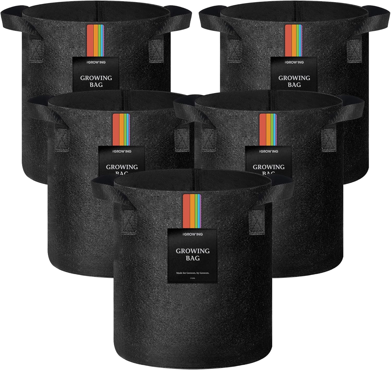 The Growing 5 Pack 3 Gallon Fabric Grow Bags,Thickened Aeration Nonwoven Fabric Plant Pots with Durable Handles,Heavy Duty 300G Planter Pot for Tomato, Fruits, Vegetables and Flowers, Black