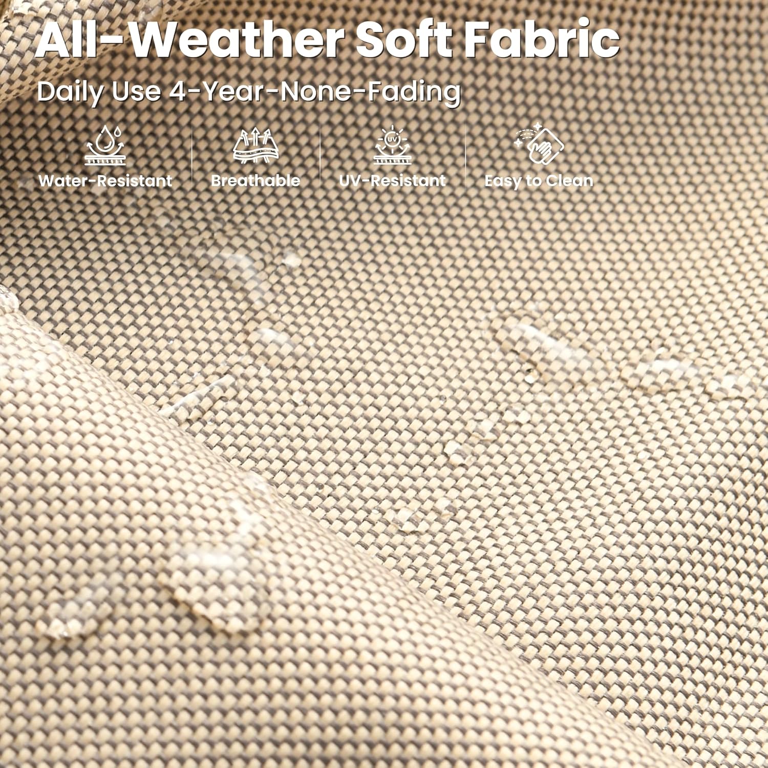- Comfy Upgraded Cushion: The outdoor chair cushion is composed of a weather-resistant olefin fabric cushion cover wrapped in a thick inner core, making it very comfortable and breathable to sit on the chair, and give you strong lumbar support