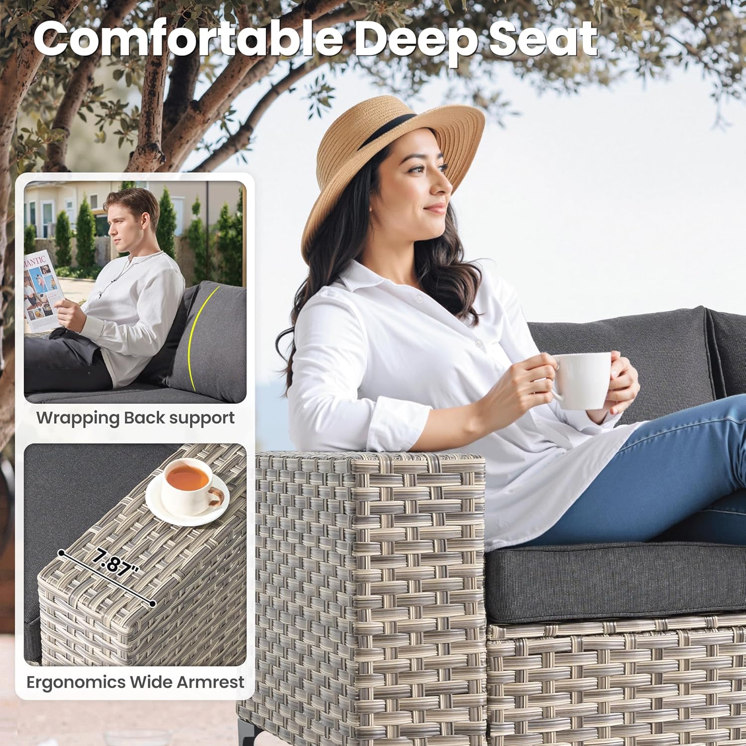 - All-weather Wicker Rattan: Our outdoor sofa sets have very durable PE wicker rattan for all-weather use and a natural texture with good coloring. The high-quality patio seating made of powder coated steel frame ensures good strength and stability
