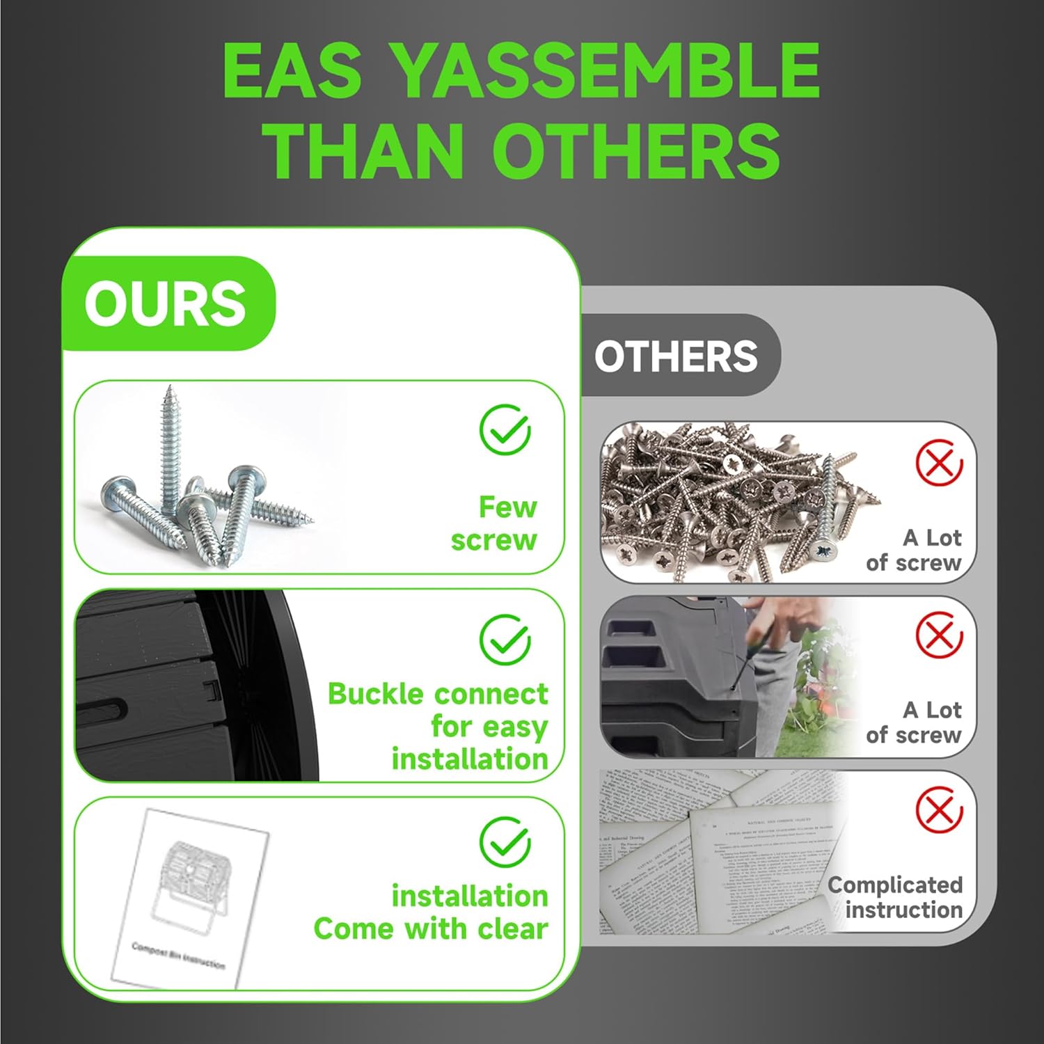 - Customer Satisfaction Guarantee: We stand behind the quality of our Dual Chamber Tumbling Composter. If you encounter any issues, our dedicated customer support team is ready to assist you for a positive composting experience.
