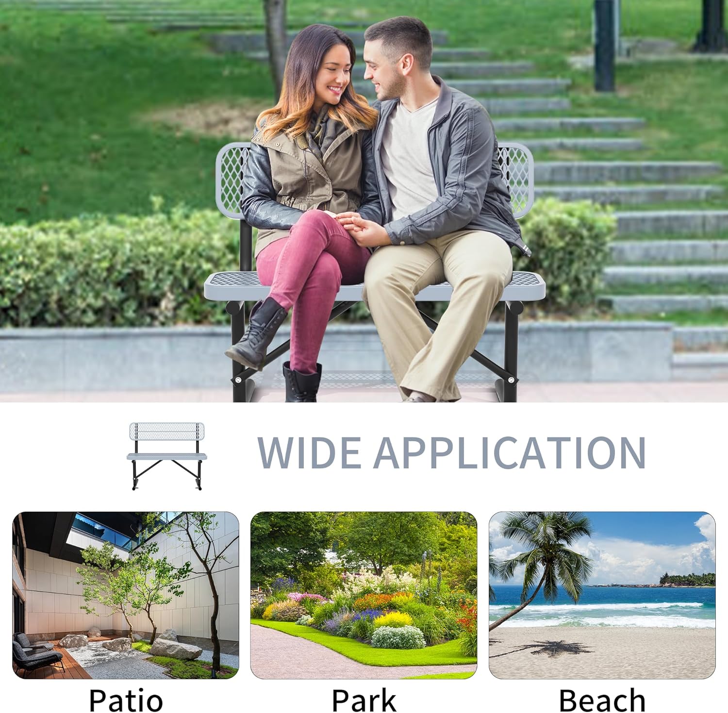 4 Feet Heavy Duty Metal Park Bench for Outside, Outdoor Bench with Backrest & Portable Frame, Commercial Benches for Shopping Malls, Stores, Parks, Patios, Decks, Grey