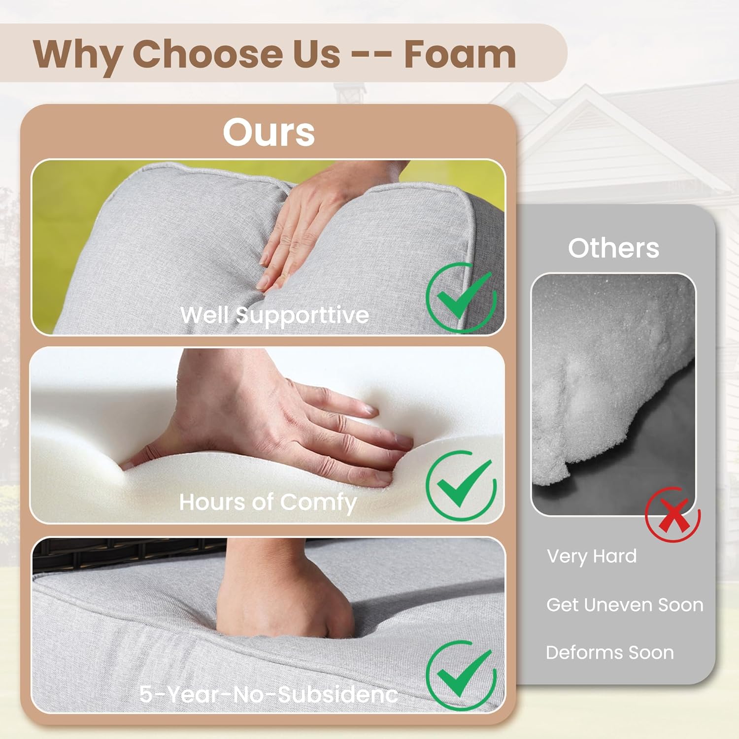 - High Density Foam &Fluffy Cotton: Selected brand new high density foam for high resilience and comfortable sitting for years. Brand new polyester cotton for fluffy back support for keeping shape for years