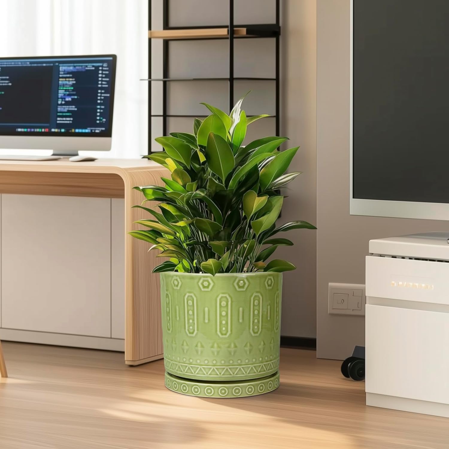 - Planter for a Variety of Plants: Ceramic plant pots is ideal for a wide range of plants. It is suitable for olive tree, snake plant, money tree, monstera, zz plant, bonsai tree, palm, sunflower, rose, ficus, eucalyptus plant, fiddle leaf fig, peace lily, bird of paradise, lavender plants, dracaena plant, geranium plant, agave plants, and more