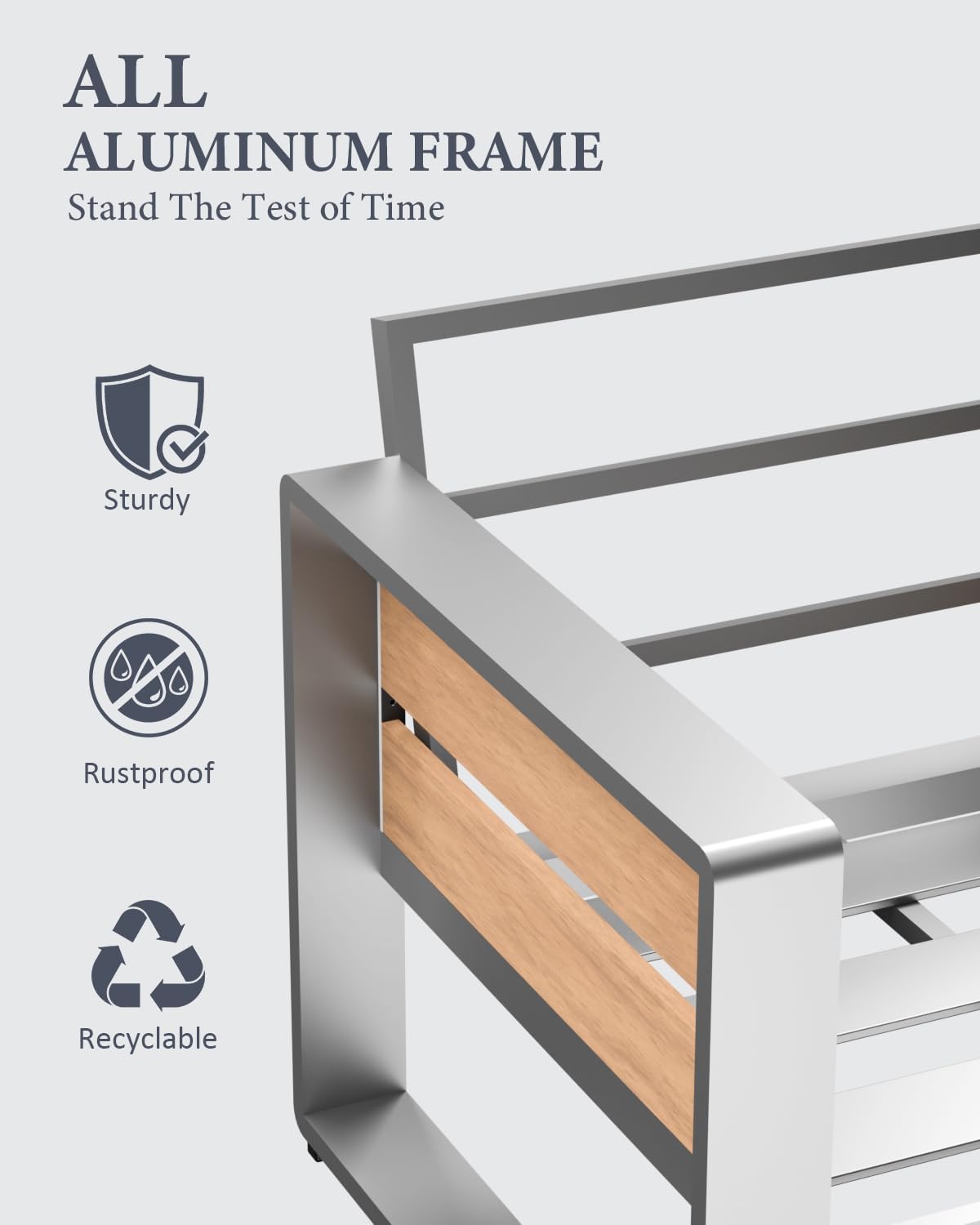 - ⛱️【Rust-resistant All-Aluminum Frame】Crafted with a brushed aluminum technique, aluminum frame, stainless steel screws, this outdoor furniture set is resistant to rain, snow, and sun exposure, it's water-resistant, and rust-resistant so you can feel safe leaving this set outdoors no matter the season. Its lightweight design allows for effortless movement and repositioning. Perfectly fitting with your poolside area, backyard, poolside, balcony, garden and deck.