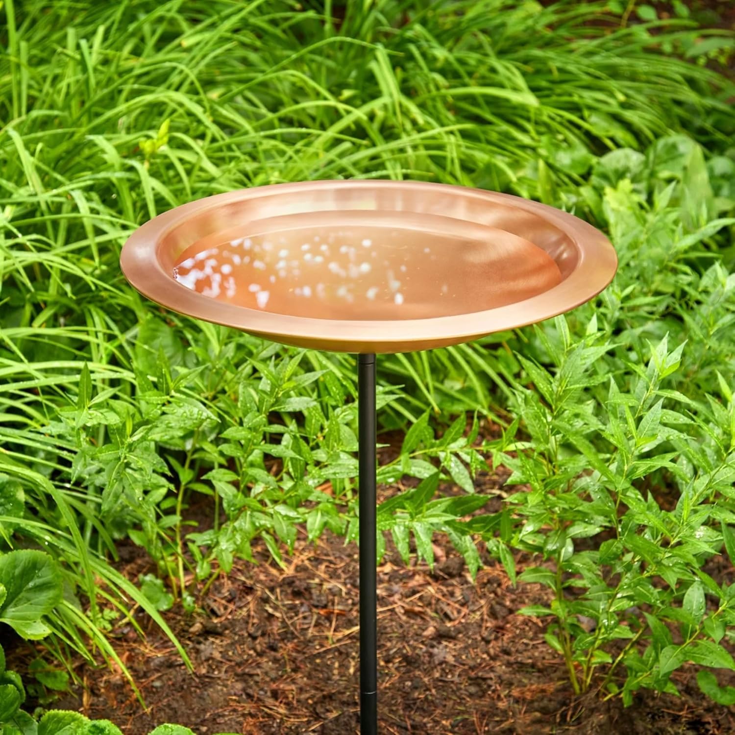 - PURE COPPER BASIN - Crafted from high-quality metal, ensuring this product will never rust. This bird bath withstands outdoor elements and maintains its beauty over time.