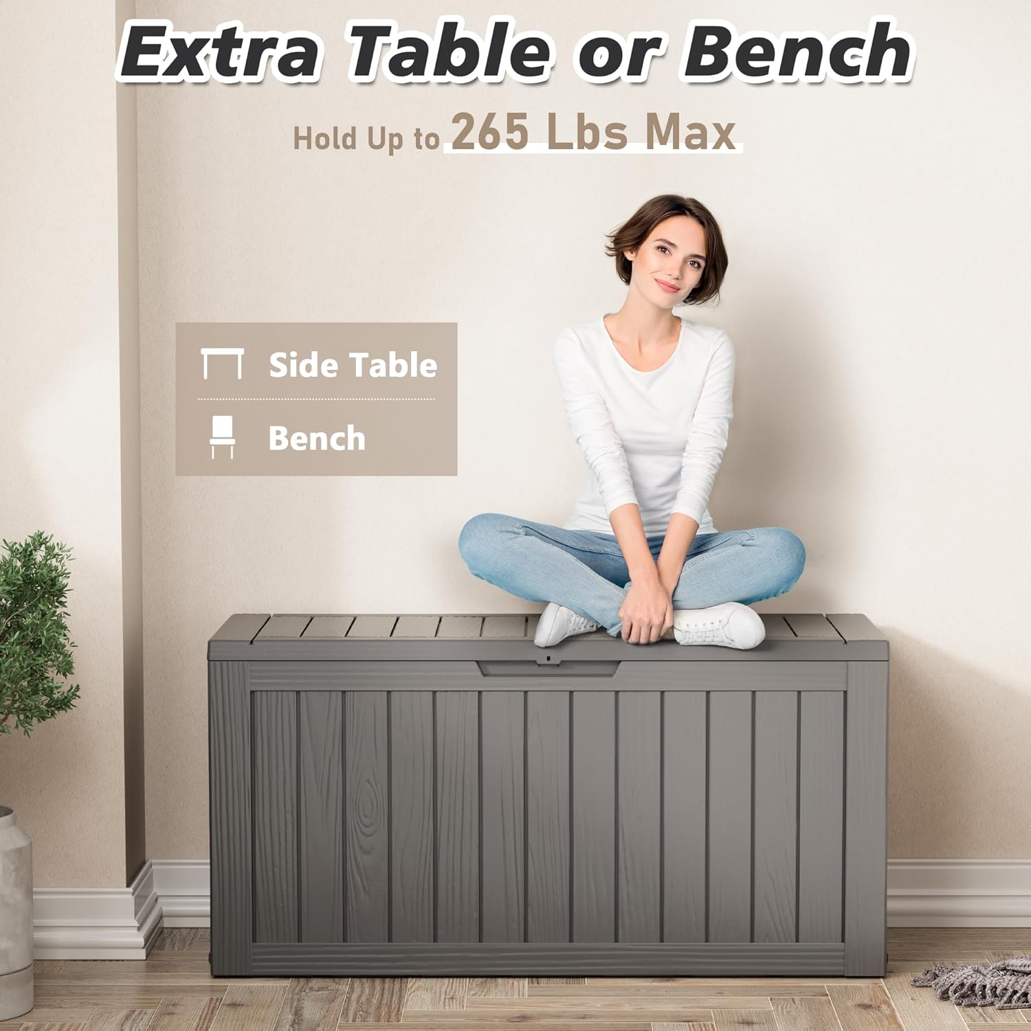 - Immense Storage Capacity: With dimensions of 44.8in x 18.3in x 22.6in, this deck box offers perfect storage space for all your outdoor essentials. It can hold up to 75 gallons of garden tools, pool supplies, patio furniture, cushions, and more.