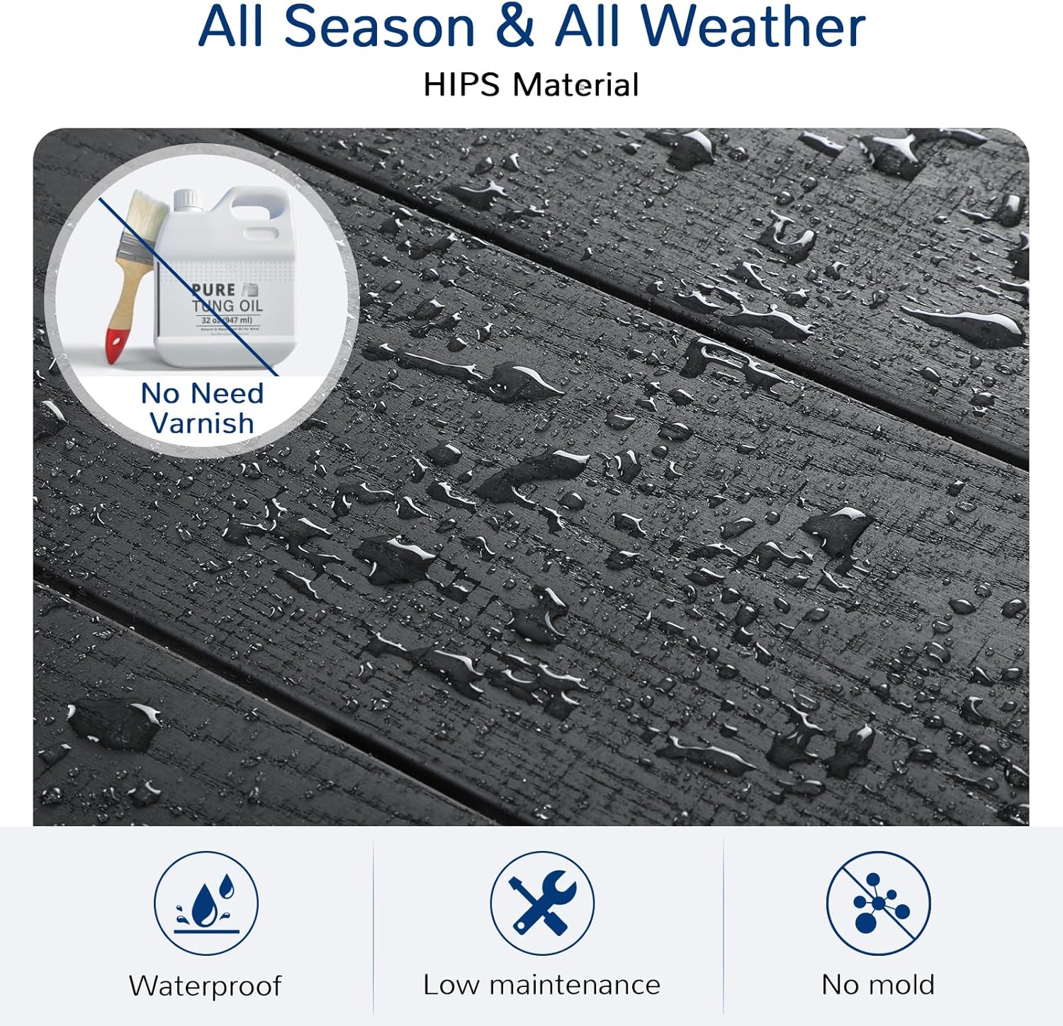 - ăWeatherproof Materialsă The outdoor bar table made of HIPS (poly lumber), with 304 stainless screws. It's for all-weather, never rusts and moldy. It can withstand hot sun, heavy snow, salt spray and coastal wind.