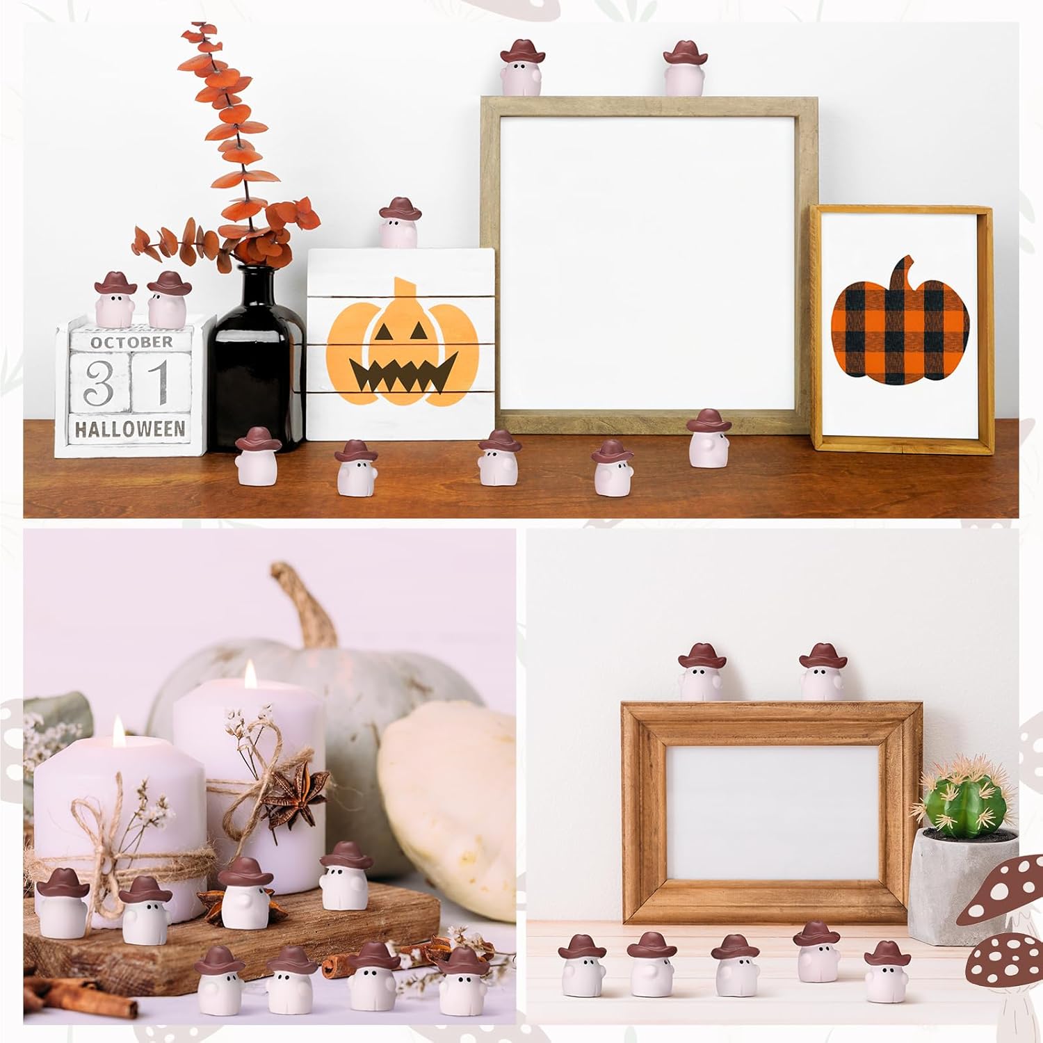 - Halloween Decoration: our package includes 50 pcs mini cowboy hat ghost which white ghost wearing brown cowboy hat, cute and funny, the quantity is enough to meet your needs, you can use these ghosts to decorate Halloween, or you can give them as gifts to your friends and family