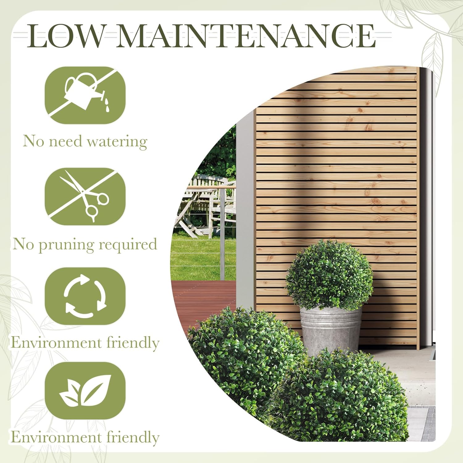 - Set of 4 Fake Trees: you will receive 4 artificial topiary balls, full size 9.84 inches /25 cm wide and 17.72 inches /45 cm high; This fake shrub boxwood ball is enough to meet your decorative needs and add a touch of green beauty