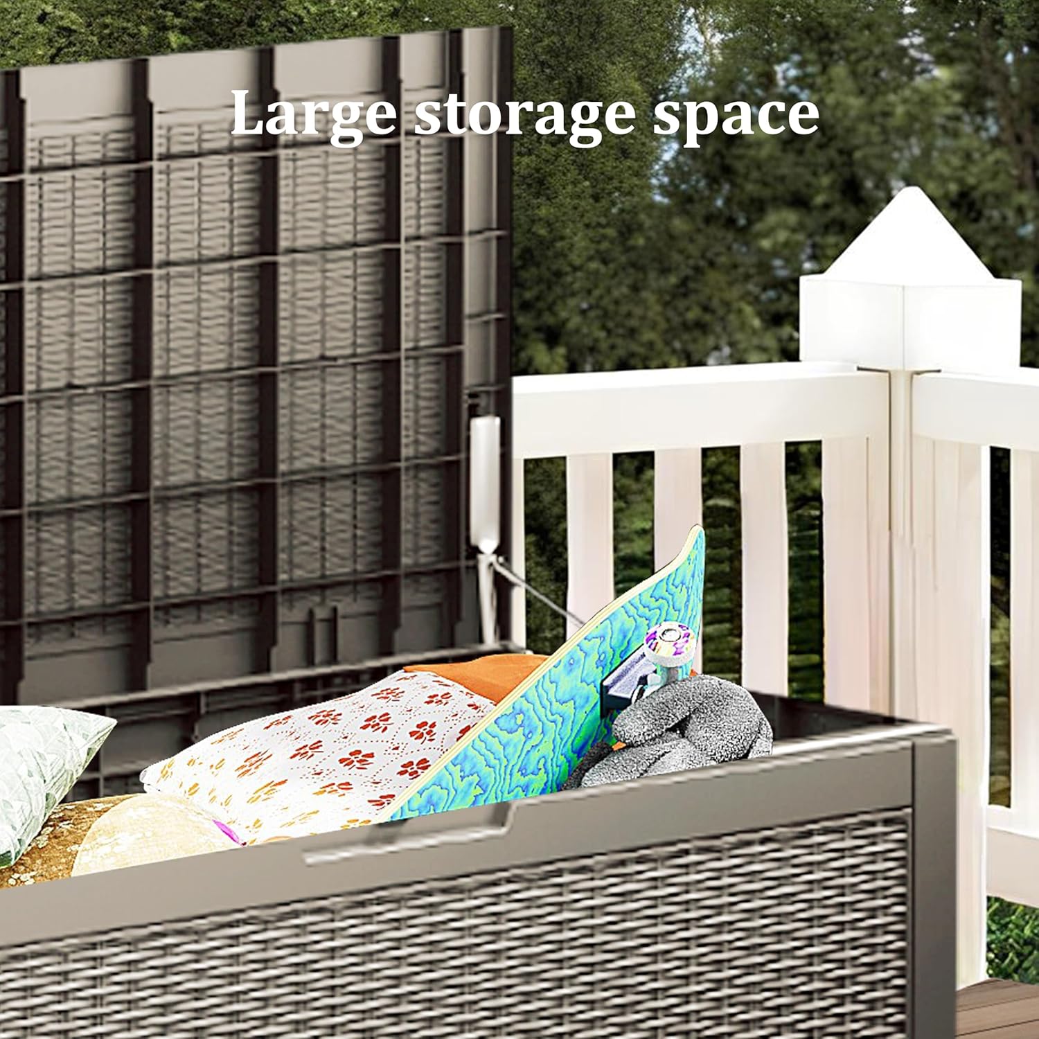 - Material: The patio outdoor storage box is made of the latest high-quality resin material, which makes this patio deck storage box waterproof, UV-resistant, anti-fading, and anti-bending protection, suitable for long-term outdoor use.