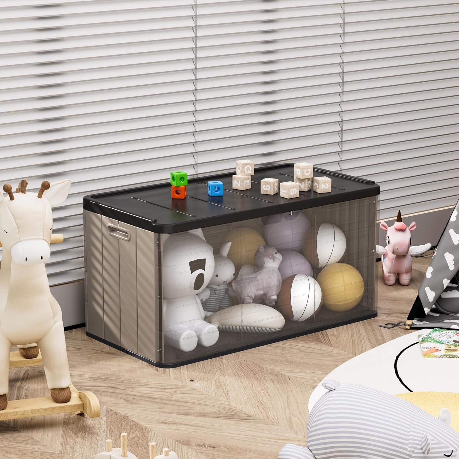 - Portable Design with Secure Locking For added security, our deck box features lockable latches, allowing you to safeguard your valuables with ease. Additionally, the built-in side handles make it easy to move the box, even if you're handling it alone. Whether you need to rearrange your patio or take it on the go, the combination of security and portability makes this deck box ideal for outdoor use.