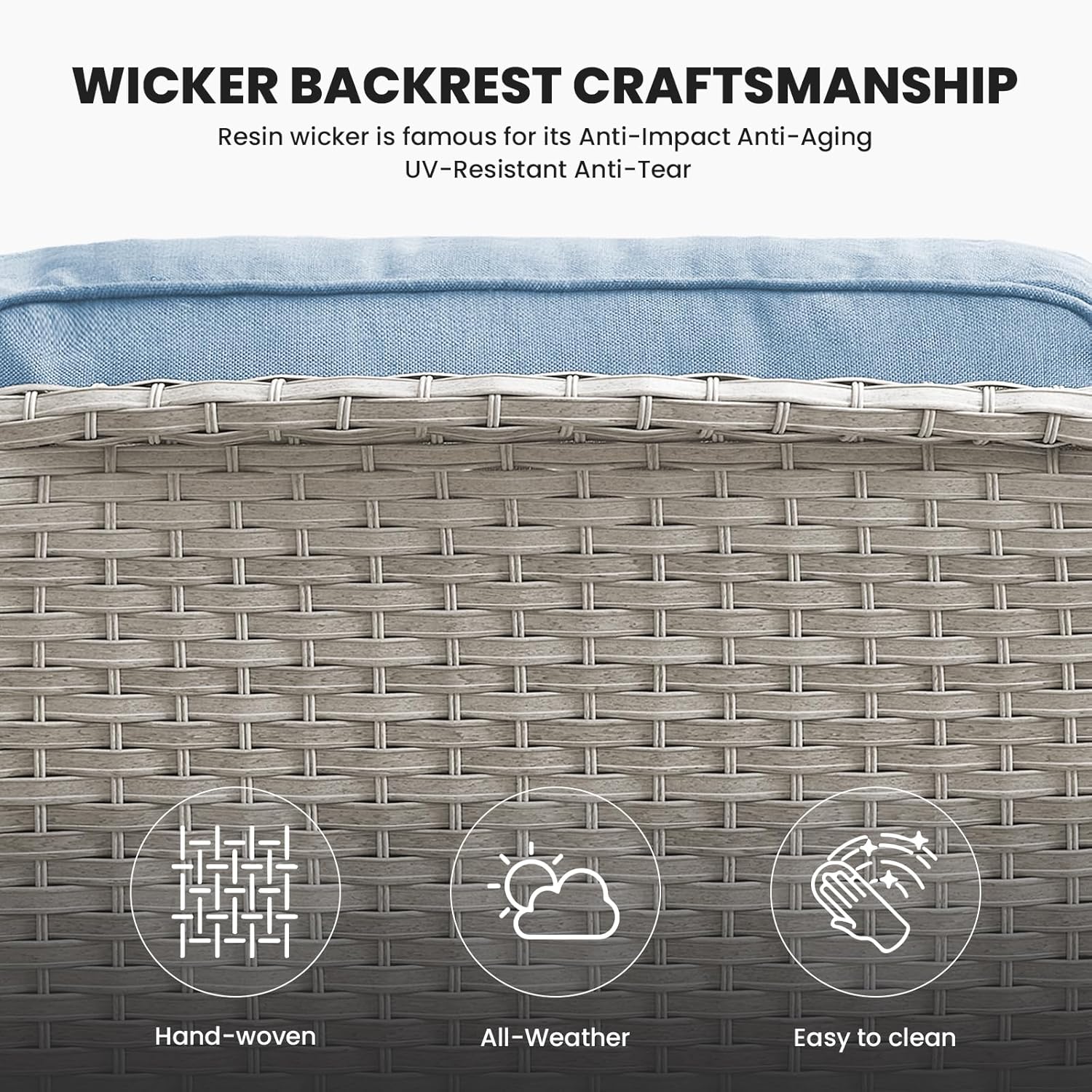 - 3.Durable Material: This outdoor wicker sofa is made of hand-woven weather-resistant PE rattan and powder-coated steel frame, which makes the sofa couch stronger and more durable. The wicker sofa can hold up to 900 pounds of weight capacity.
