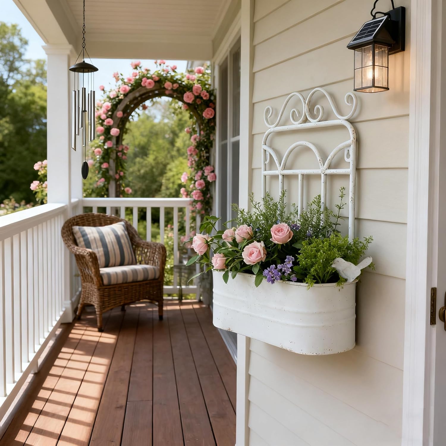 Rustic Metal Wall Planter Country Garden Wall Hanging Mount Vase Pocket Outdoor Vintage Hanging Pot Farmhouse Wall Decor for Plants Flowers (White)