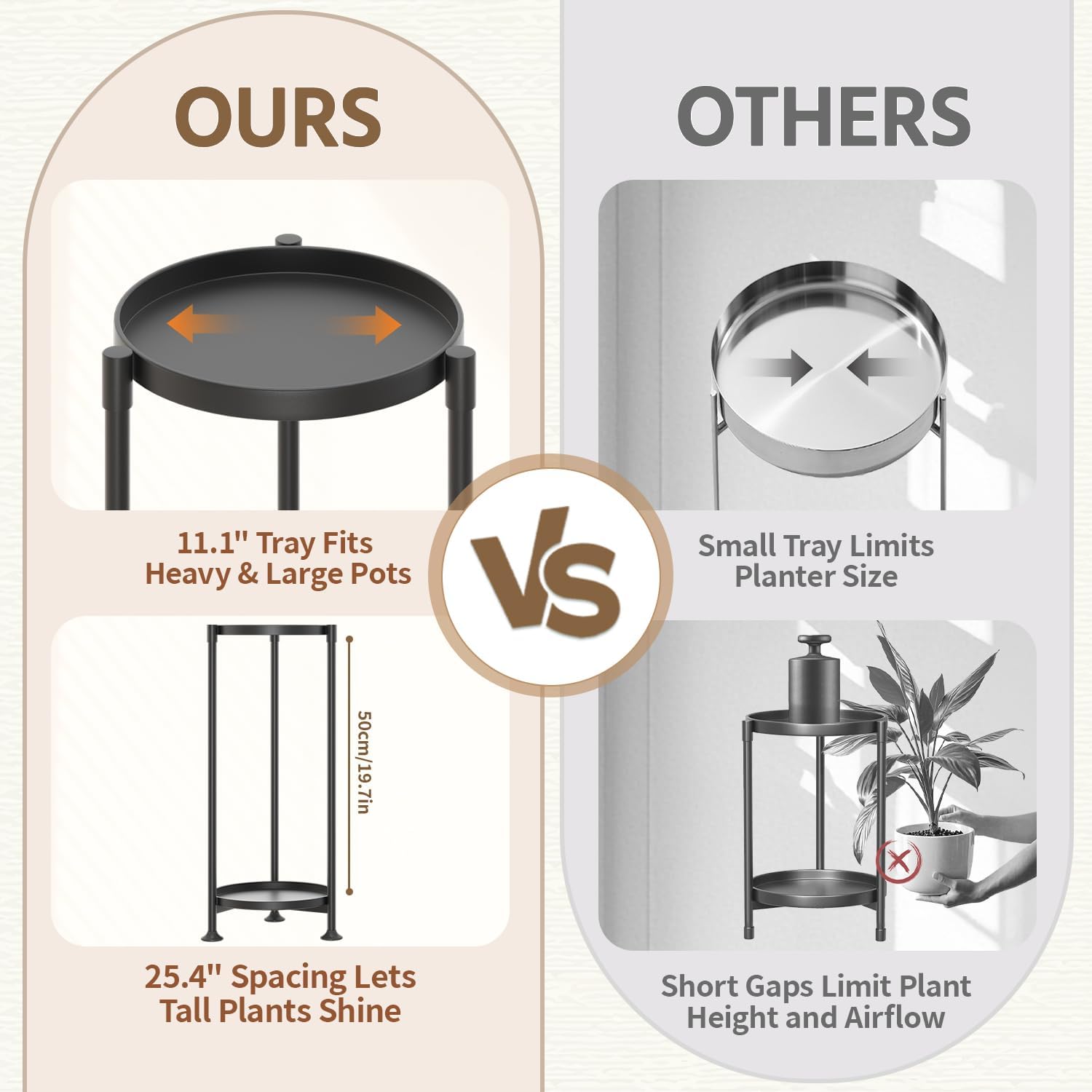 - 【Large Trays for Bigger Plants】The upgraded 11.1-inch wider trays offer more space than most on the market, giving you plenty of space for larger planters. Each tray can hold over 40 pounds, making it a perfect fit for those hefty cement pots that other plant holders just can't handle.