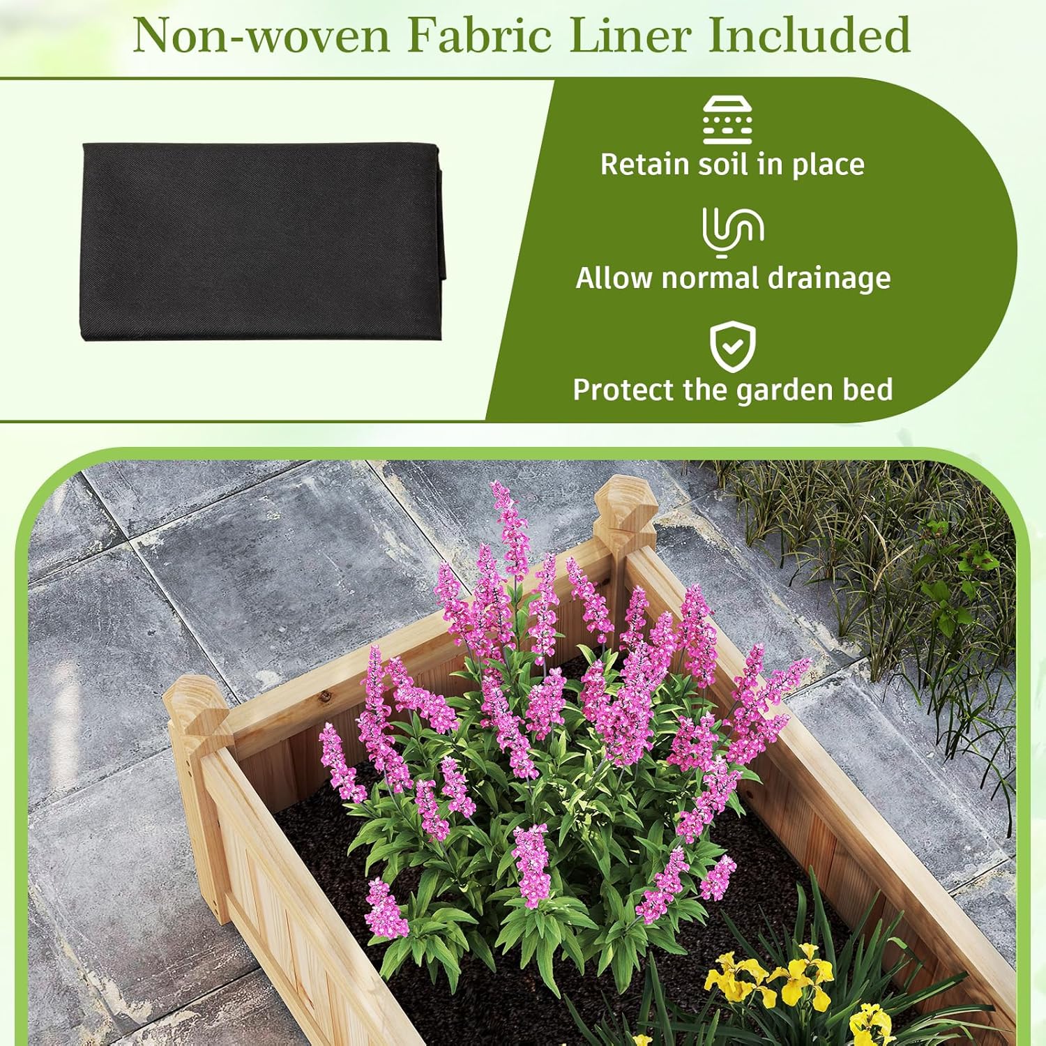 • 【Premium Fir Wood Material】 Crafted from high-quality natural fir wood, our garden box features an attractive natural wood grain that adds to the overall aesthetic appeal of the garden with minimal ecological impact. In addition, the smooth planter surface is coated with a waterproof coating for an excellent outdoor durability and allows for extended service life.