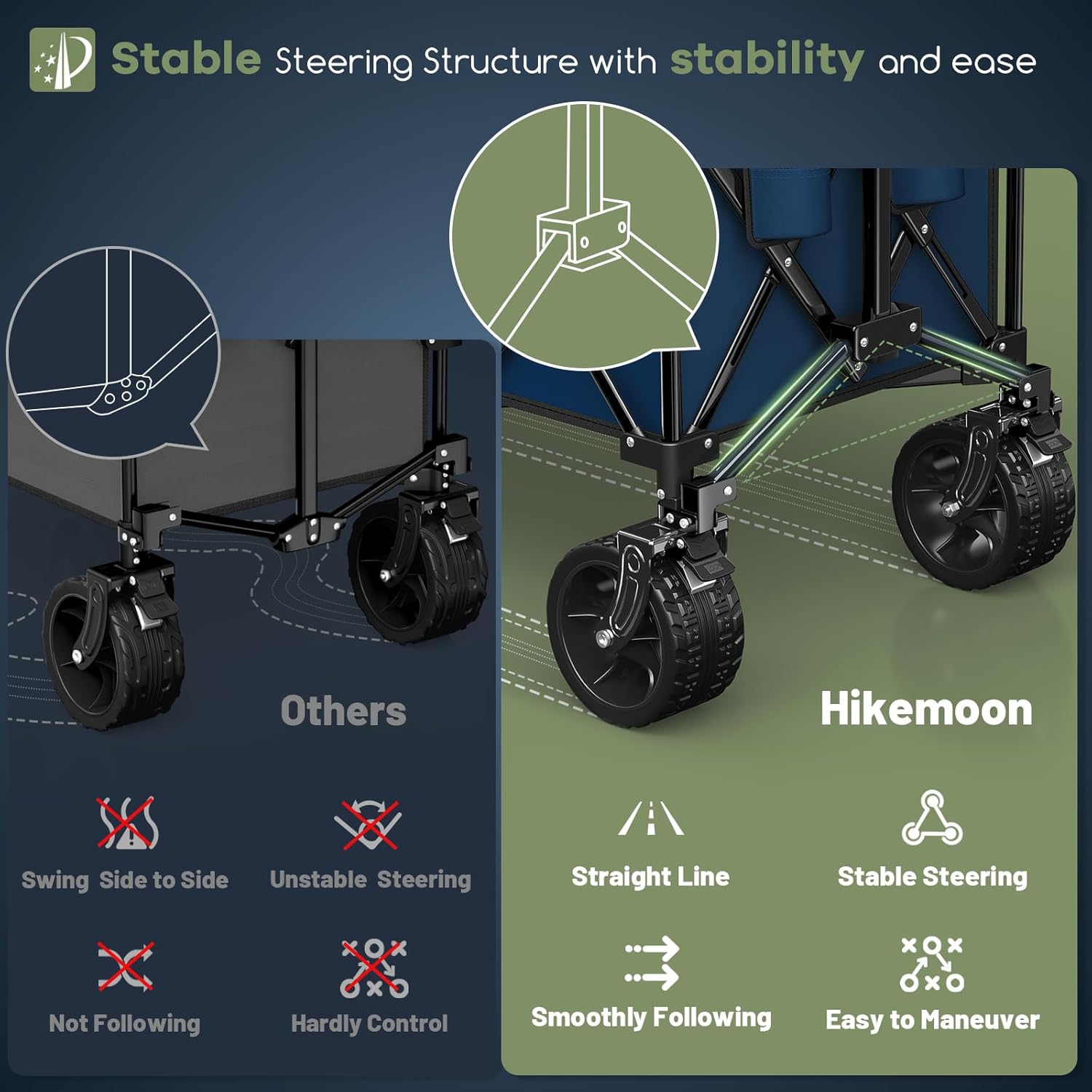 - ใ๐๐ซ๐จ๐๐ฎ๐๐ญ ๐๐ข๐ณ๐, ๐๐ข๐๐ ๐๐จ๐๐ค๐๐ญ ๐๐ง๐ ๐๐ฎ๐ฉ ๐๐จ๐ฅ๐๐๐ซ๐ฌใ: Hikemoon collapsible wagon cart ๐ฎ๐ง๐๐จ๐ฅ๐๐๐ ๐ฌ๐ข๐ณ๐: 46.06"D x 22.64"W x 24.17"H, ๐๐จ๐ฅ๐๐๐ ๐ฌ๐ข๐ณ๐: 12.59"D x 8.98"W x 24.17"H, ๐ฐ๐ก๐๐๐ฅ ๐ฌ๐ข๐ณ๐: 7" x 4", ๐๐ฒ๐ถ๐ด๐ต๐ ๐ผ๐ณ ๐๐ฎ๐ป๐ฑ๐น๐ฒ ๐๐ผ ๐๐ฟ๐ผ๐๐ป๐ฑ: 42.91". Features one Oxford side pocket and two cup holders for convenient storage of drinks and personal items.