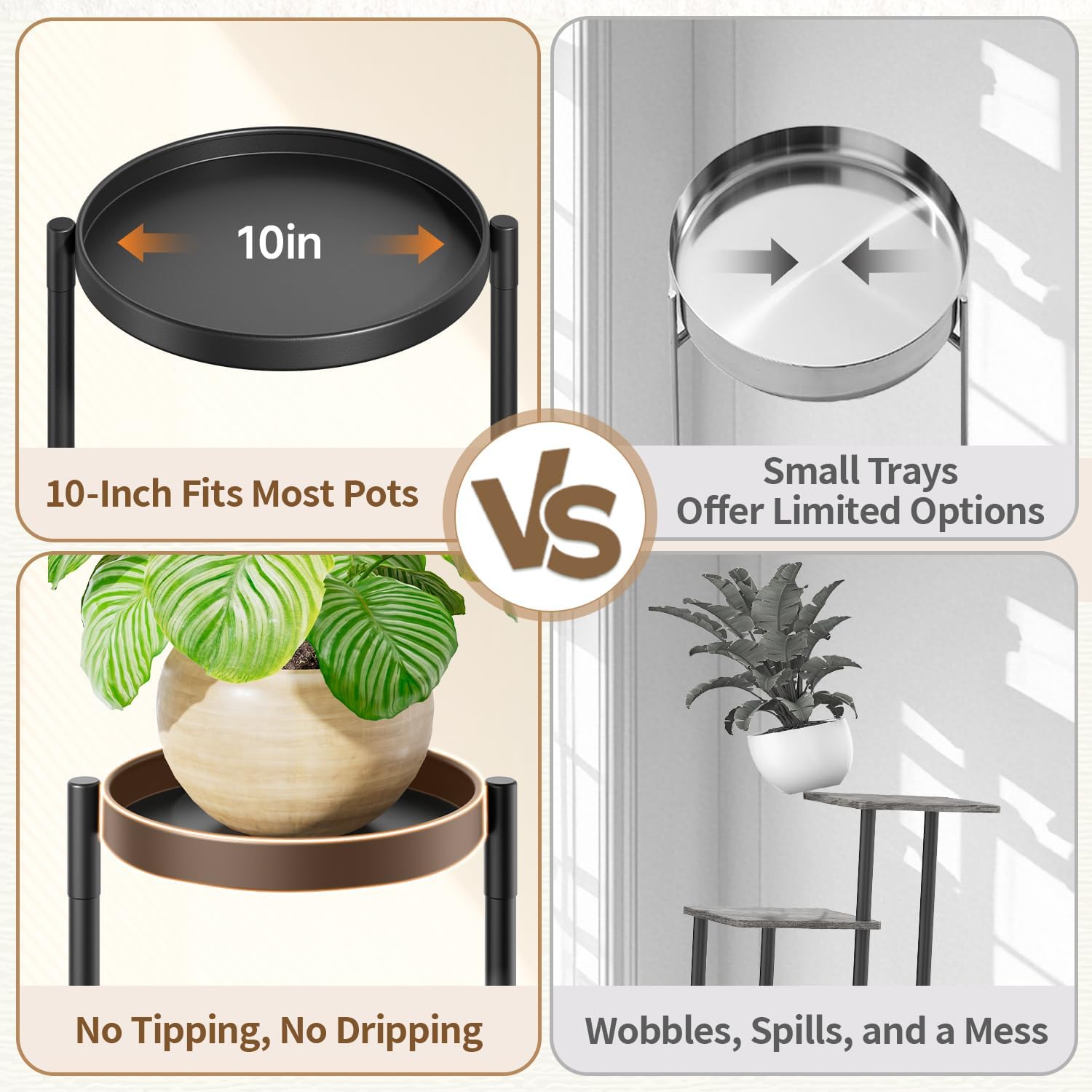 - 【Perfect Home for Big Pots】Say goodbye to the frustration of finding the right spot for your big and heavy flower pots. The newly upgraded 10-inch tray provides the perfect home they deserve. It gathers them into one beautiful display, raised for better sunlight and more convenient care.