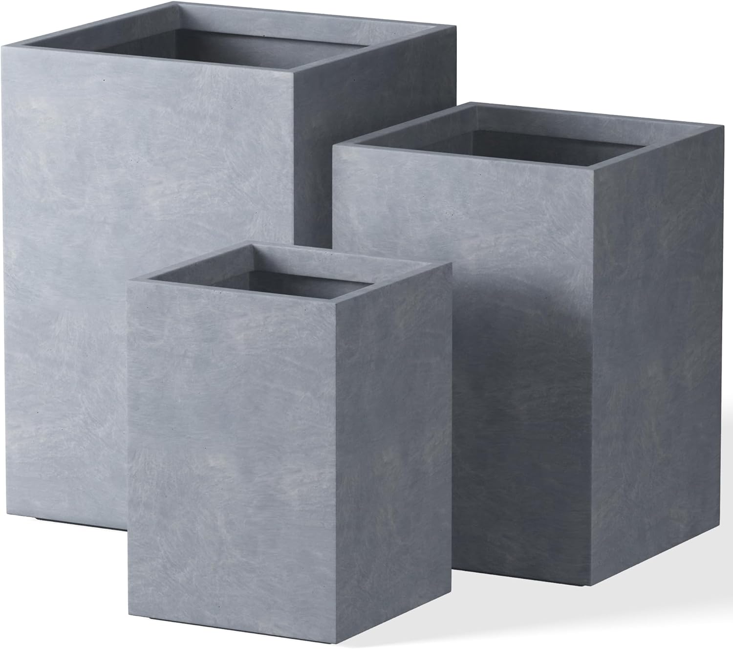 Kante 18.5",15.7",12.6" H Tall Rectangular Concrete Planters Set of 3, Outdoor Indoor Lightweight Plant Pots with Drainage Hole and Rubber Plug, Modern Style for Home Garden Patio, Slate Gray