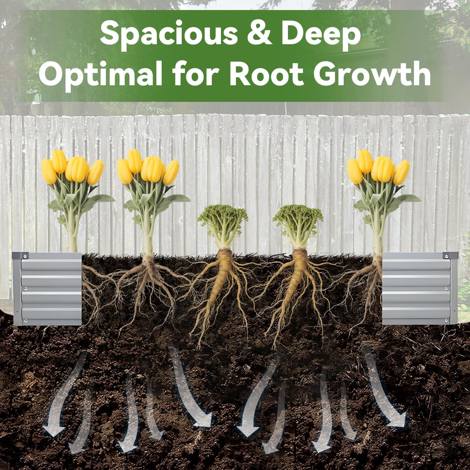 - 【Garden Bed Size】Our galvanized raised garden bed measures 6x3x1ft,This soil storage volume provides an extremely spacious growing environment for all types of vegetables and deep-rooted plants to absorb enough nutrients, ensuring that they can thrive.