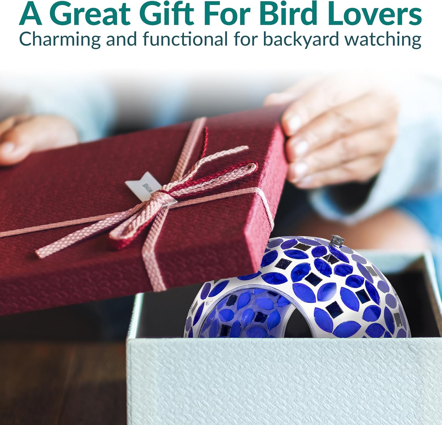 - ATTRACT BIRDS TO THE YARD: This cute bird feeder features vibrant colors and a mosaic glass construction that is sure to appeal to humans and birds alike. The bright colors and reflective material will help attract a variety of bird species to the feeder including cardinals, finches, sparrows, and more. Plus, it will add a stylish pop of color to any patio decor. The open fly-through design also makes it easier for birds to access the seed, encouraging them to come back again and again.