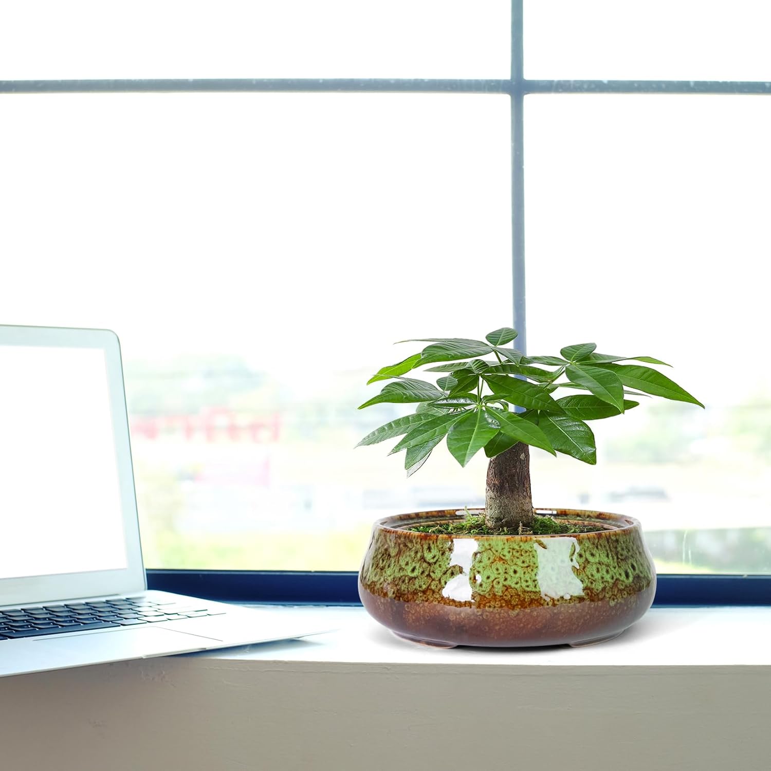 ARTKETTY Succulent Pots - 8 Inch Plant Pot, Large Bonsai Pots with Drainage, Ceramic Planters for Indoor Outdoor Plants, Round Shallow Cactus Flower Plant Container Bowl Decorative Home Garden