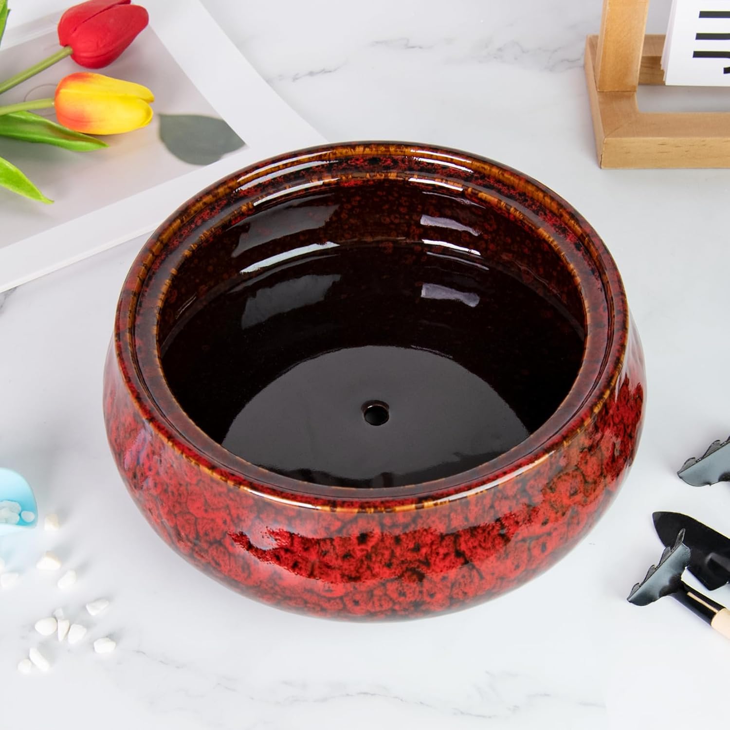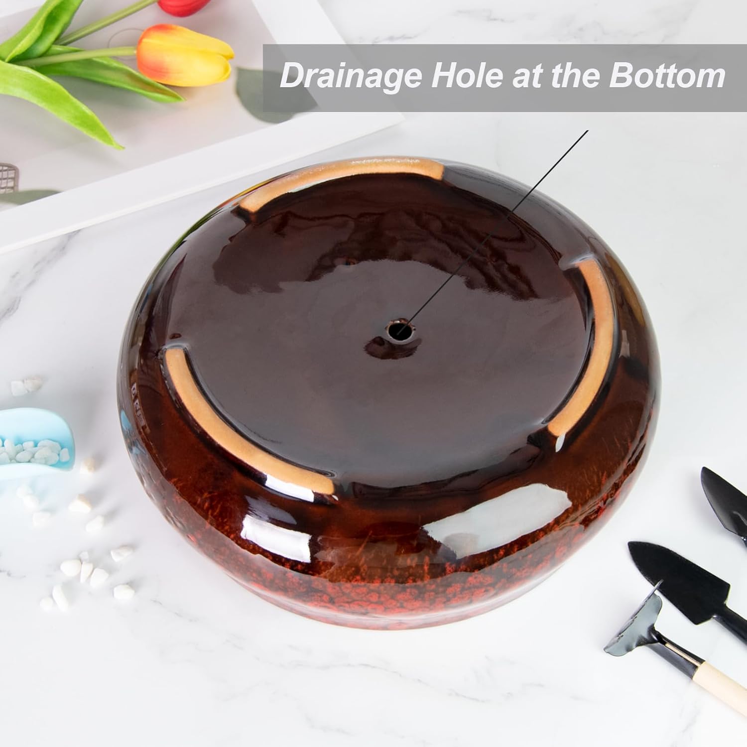 - 【Drainage Hole】A small drainage hole at the bottom for drainaging water, which is essential for keeping inside water in a balanced level, perfect for all kinds of indoor plants and desk flowers