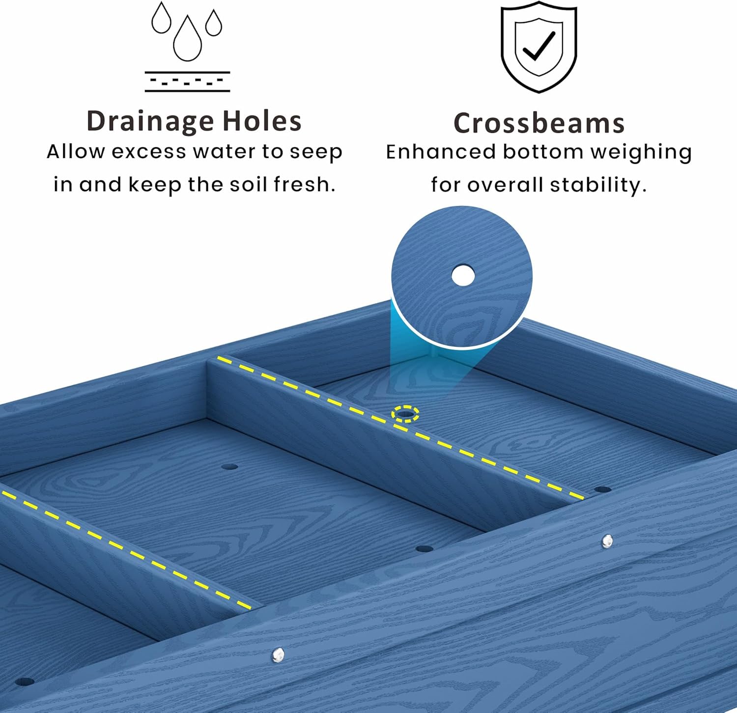 - Premium Materials: Crafted from durable HDPE, this outdoor elevated planter box resists common issues found in traditional wooden, ceramic, or metal planters—such as rotting, cracking, and rusting, year-round weather resistance