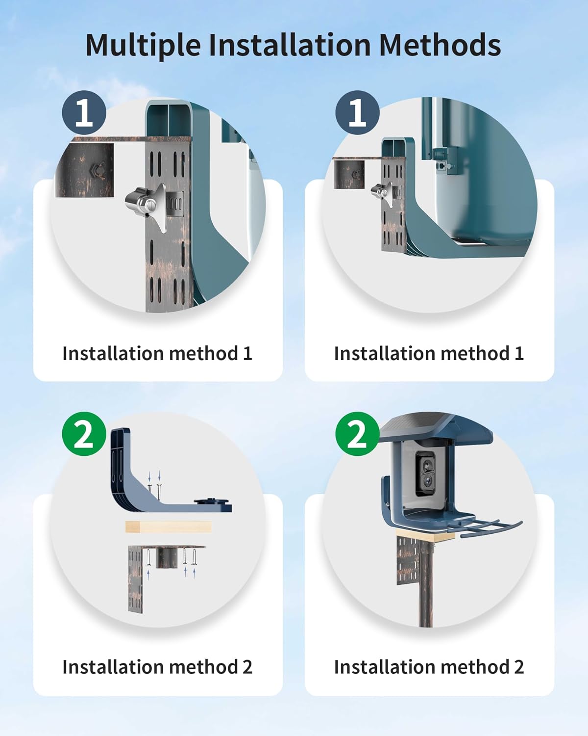 - 【Easy Installation】This bird feeding station reaches a total height of 74.5 inches and comes with 6.5-inch 5-prong base, 3 x connecting pole, and an L-shaped plate. The slip-in connection method allows for easy assembly, similar to stacking building blocks. Installation typically takes 20 to 40 minutes and no need extra tools. This user-friendly design ensures that anyone, from young enthusiasts to seniors, can set it up effortlessly.