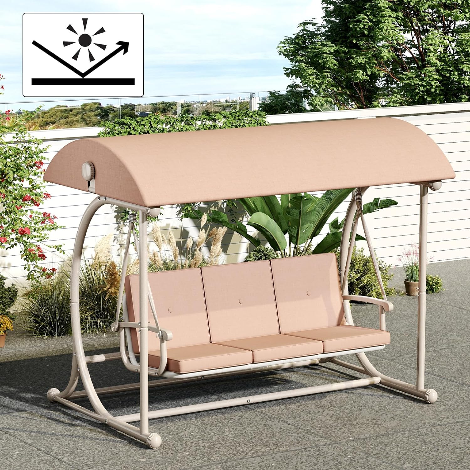 - Protective Canopy: Adjustable canopy to shield from direct sunlight, paired with thick, high-resilience foam cushions for ultimate comfort, allowing you to enjoy the outdoors comfortably. The canopy swing is perfect for resting or relaxing in the garden, lawn, patio or backyard on a sunny day