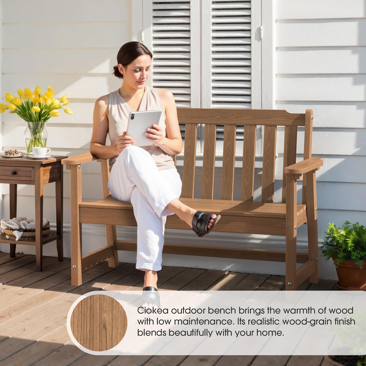 - 【All-Weather HDPE】: Ciokea outdoor bench is constructed from high-density polyethylene (HDPE), ensuring it withstands rain, UV rays, and temperature changes without cracking or rusting