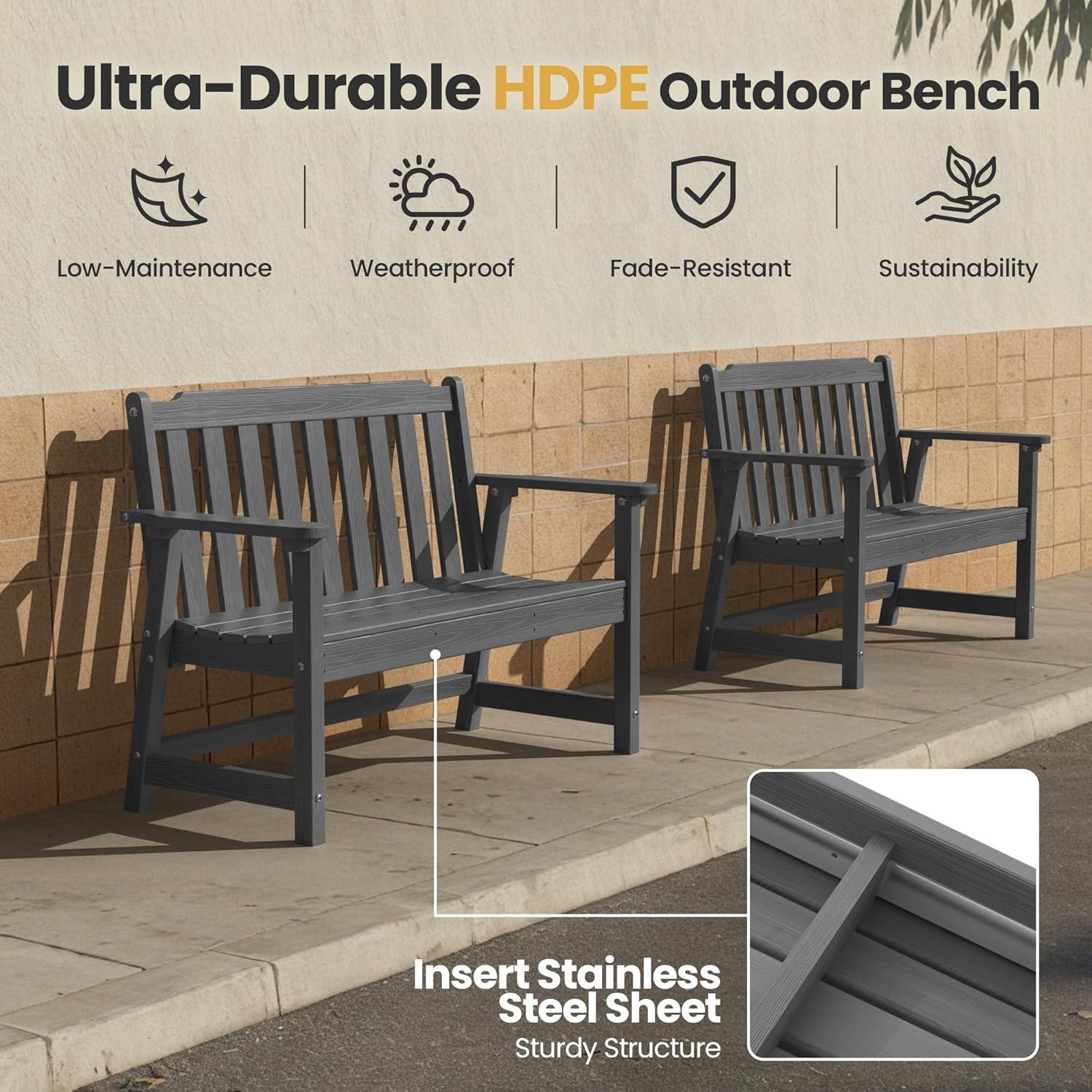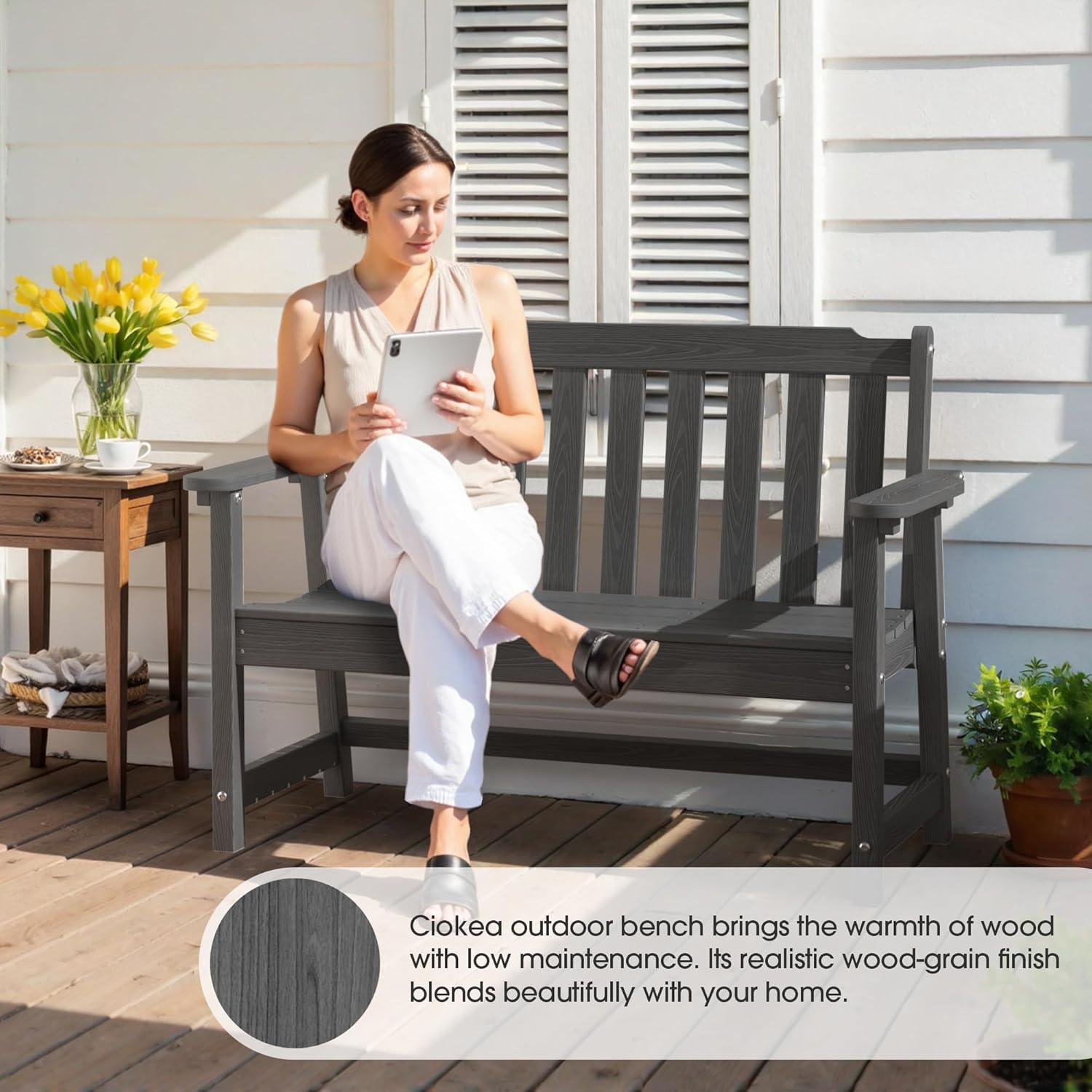 Ciokea 46" Heavy Duty Outdoor Bench, HDPE Weatherproof Garden Benches, Durable 2-Person Porch Benches with 660 Lbs, Waterproof Patio Bench for Outside Balcony Deck Backyard, Dark Grey
