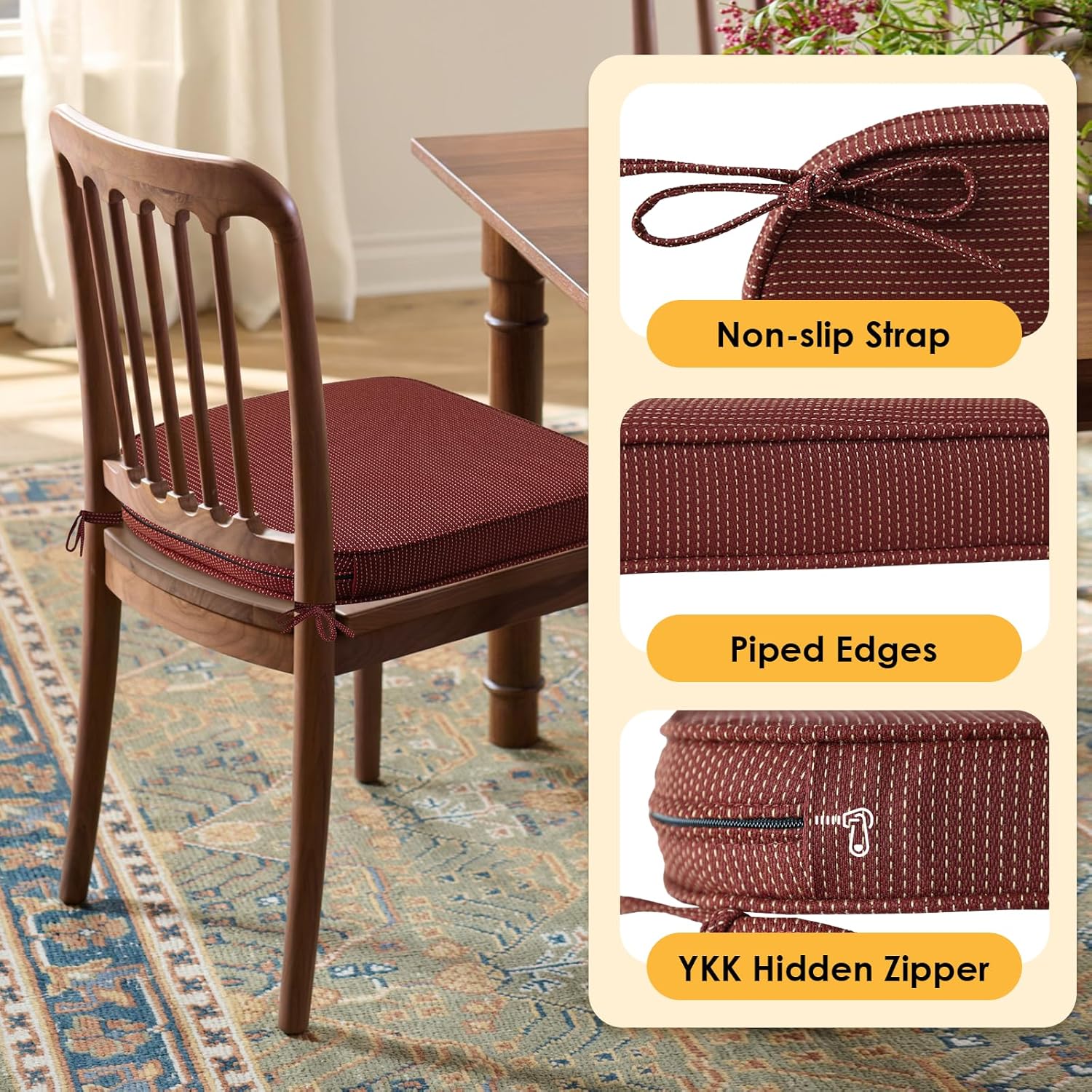- Non-slip Ties & Piped edge: There are 2 straps on each side of the outdoor furniture cushions to keep stable and feature piped edges for a polished look and superior durability.